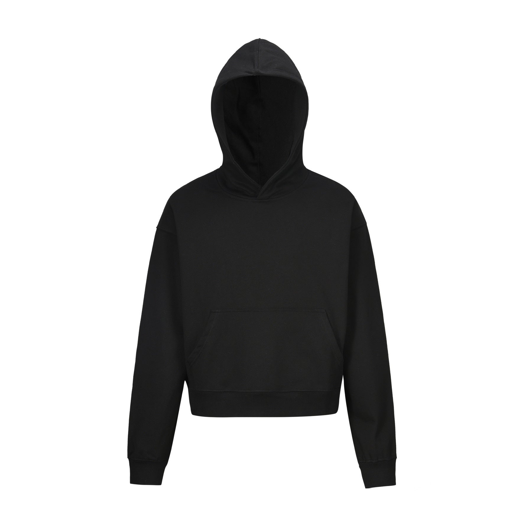 0039 American retro trend men's and women's high street version design solid color men's pullover short wide hooded sweatshirt