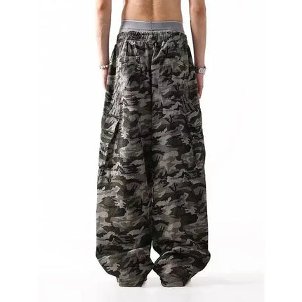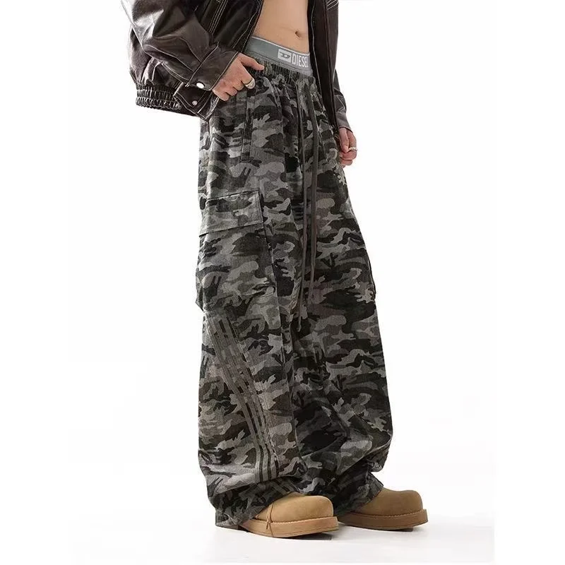 Talkless Camouflage wide leg Multi-Pocket Unisex pant--------5247