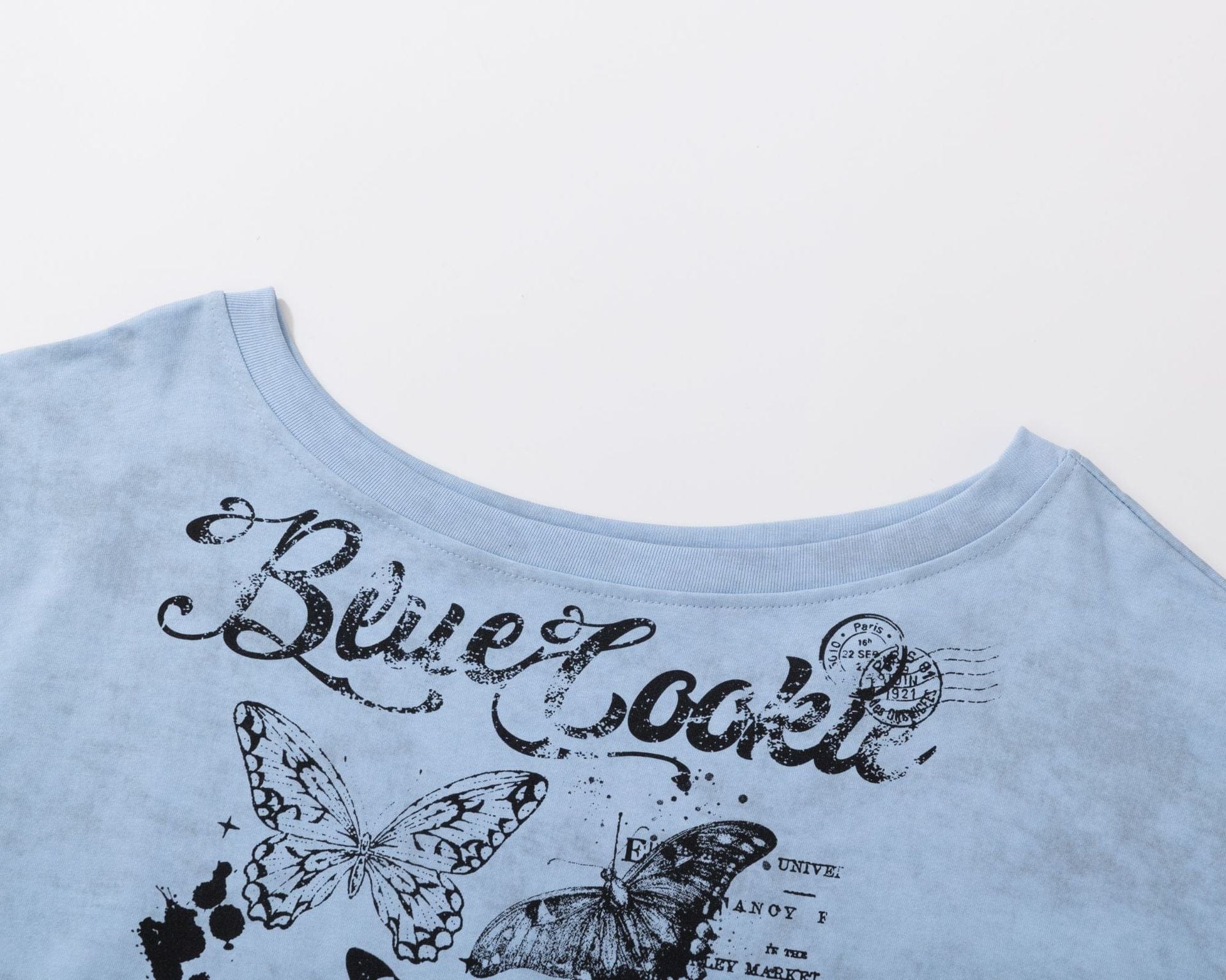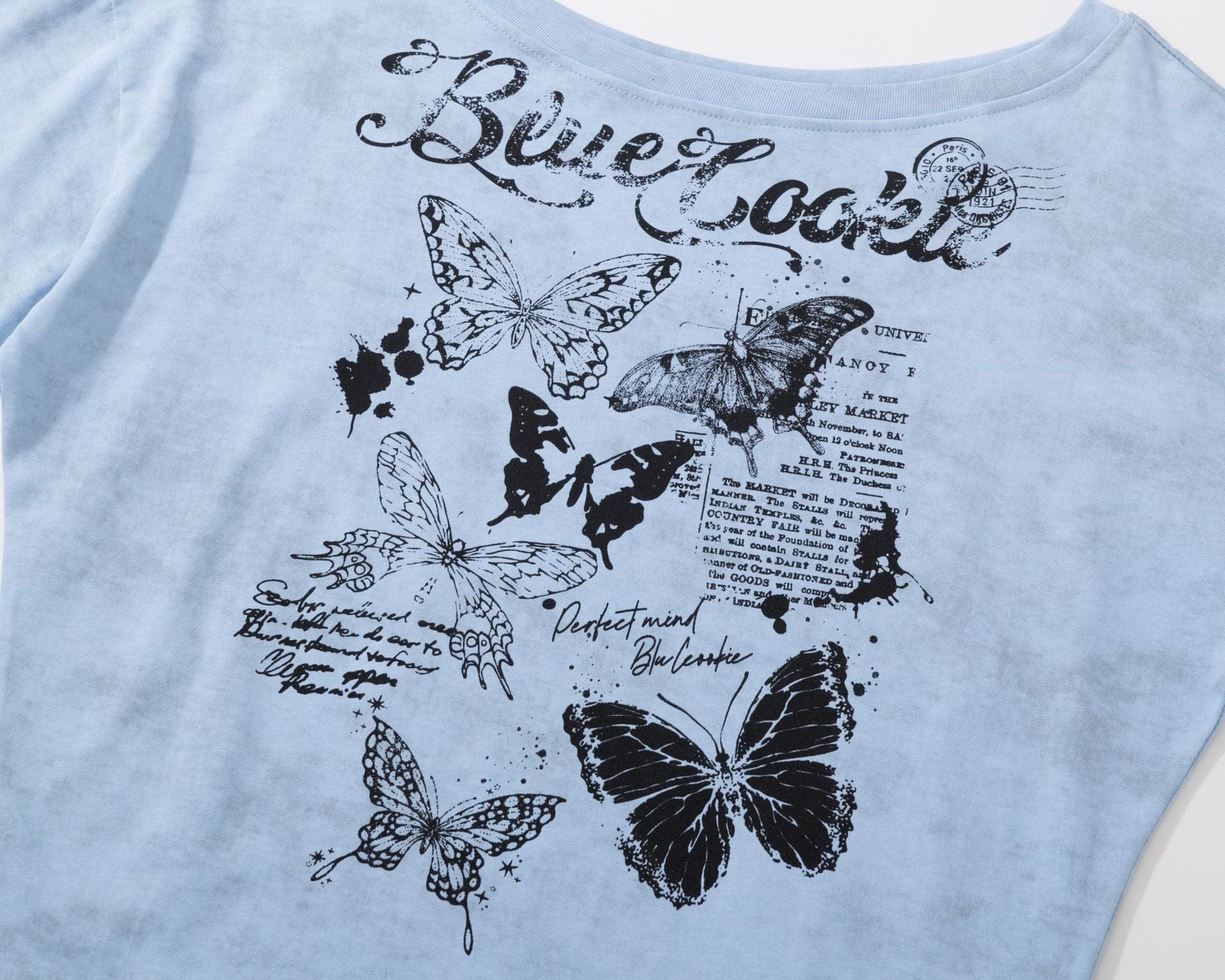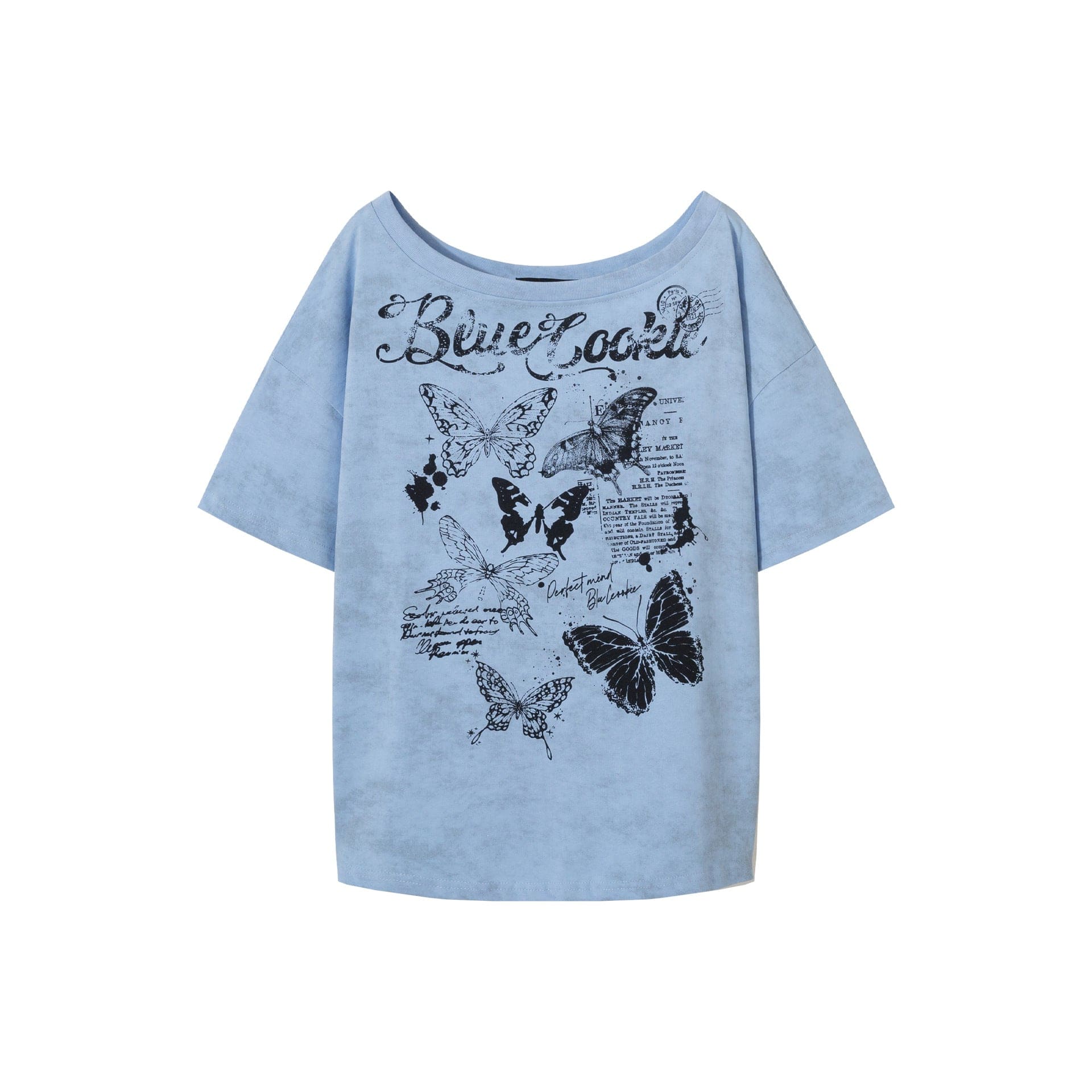 American Sweet Cool Butterfly Off-the-Shoulder Short Sleeve T-Shirt Women's 2025 Summer Lazy Style Hot Girl Loose Casual Slanted Shoulder Top