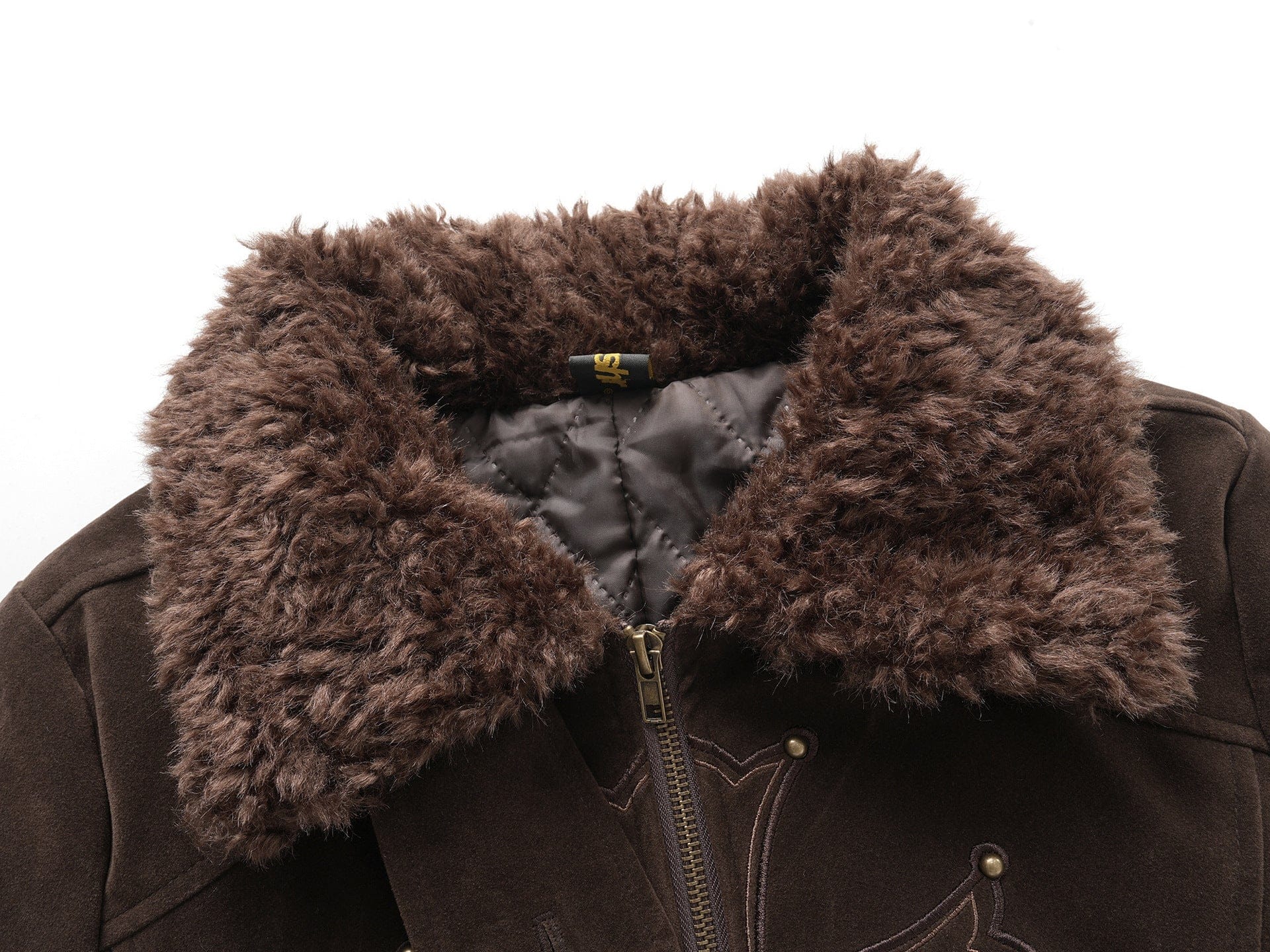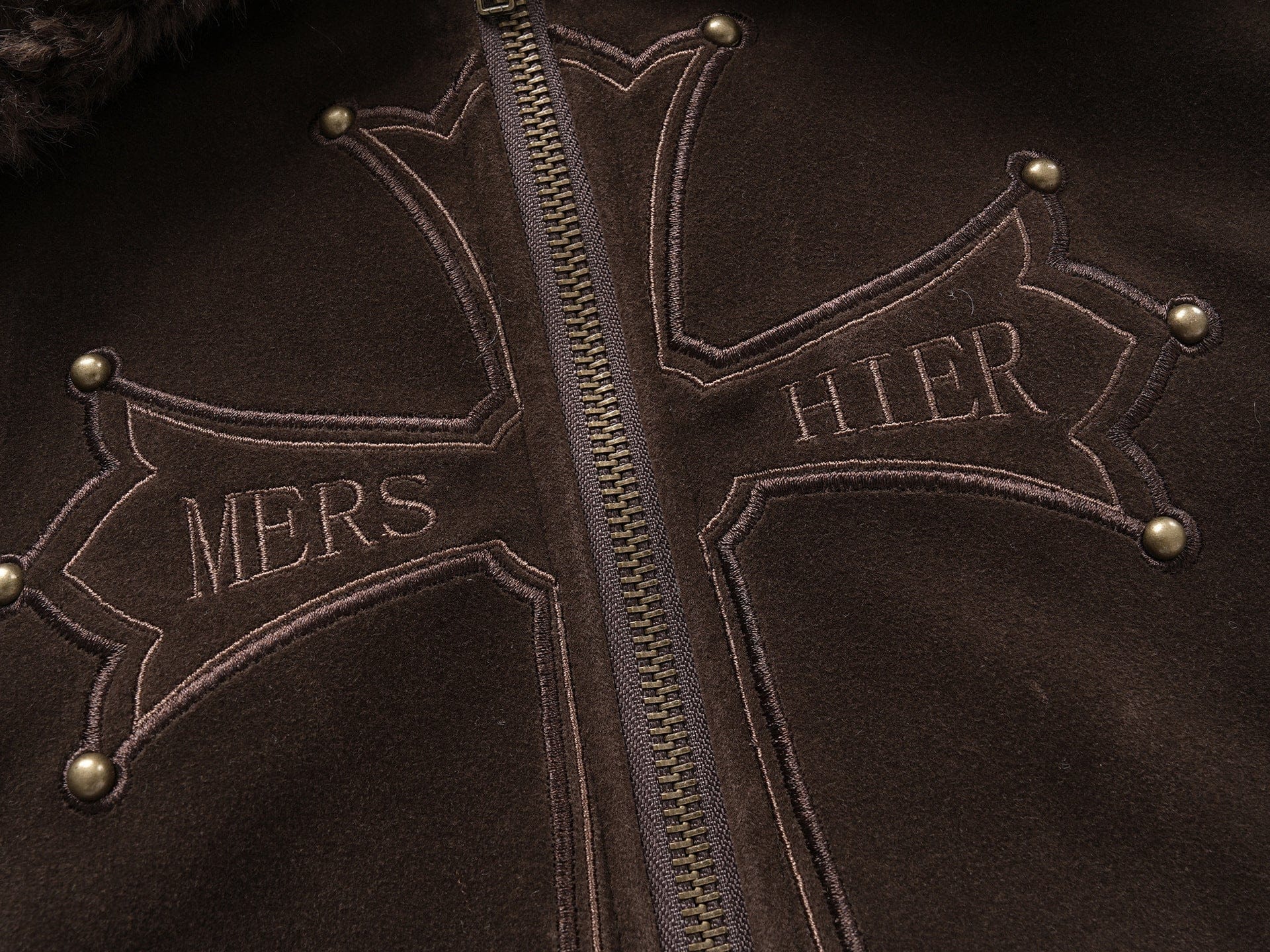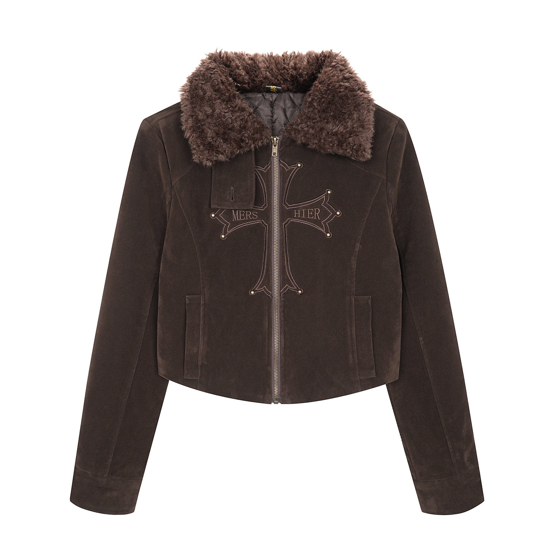 American vintage nail bead cross fur collar jacket jacket for women 2025 fall loose casual versatile top