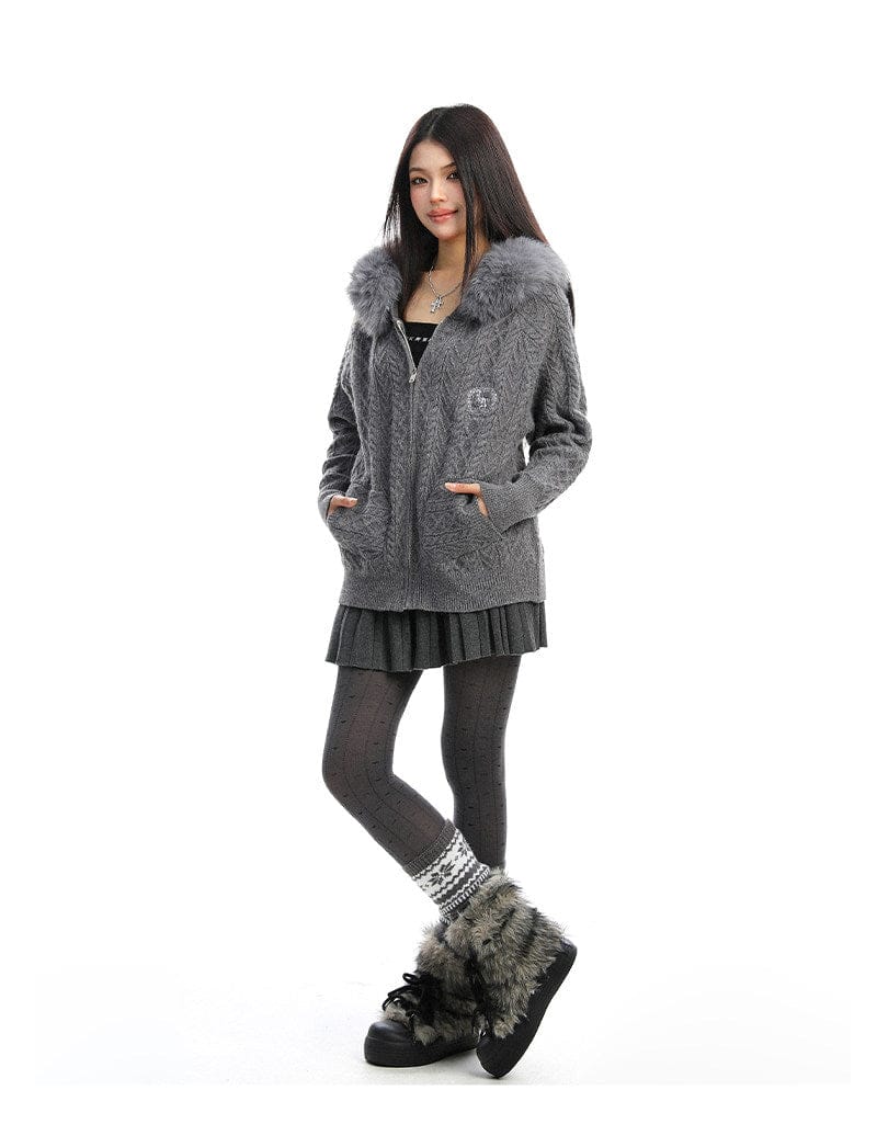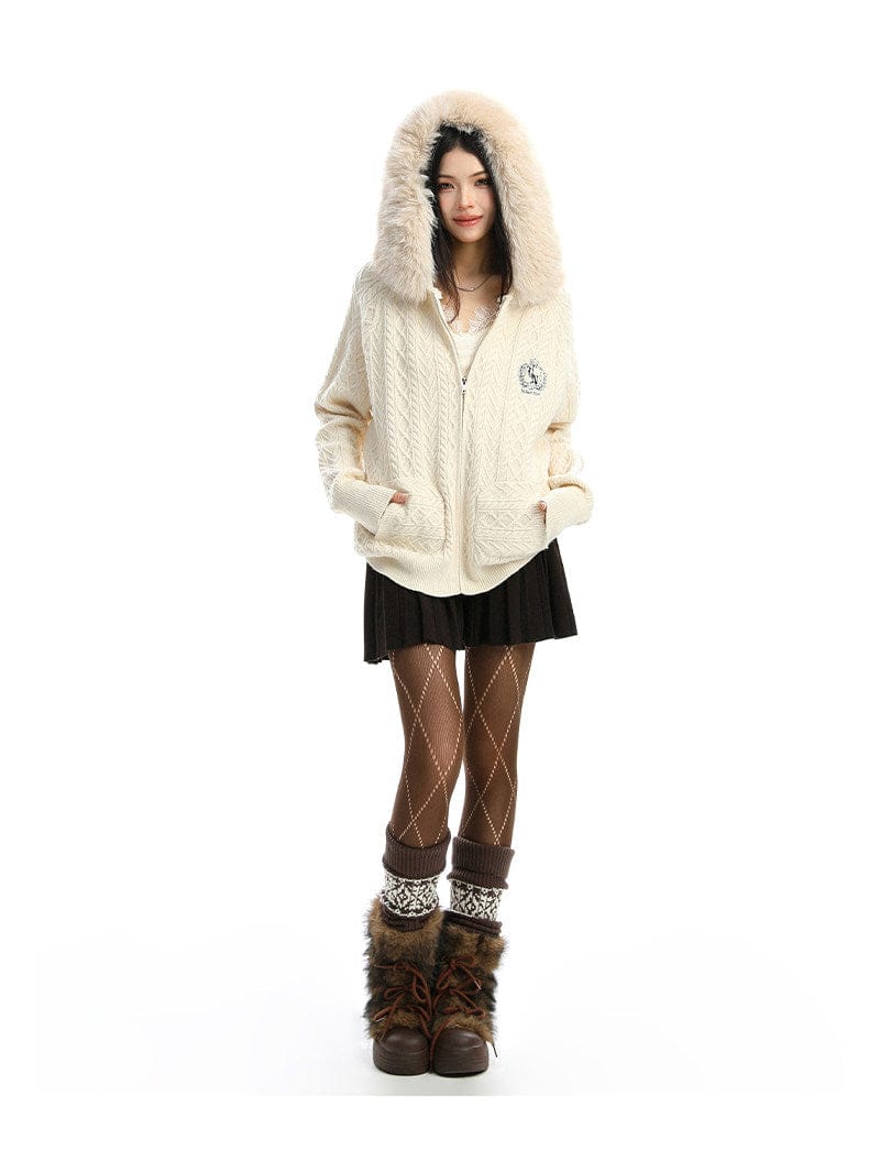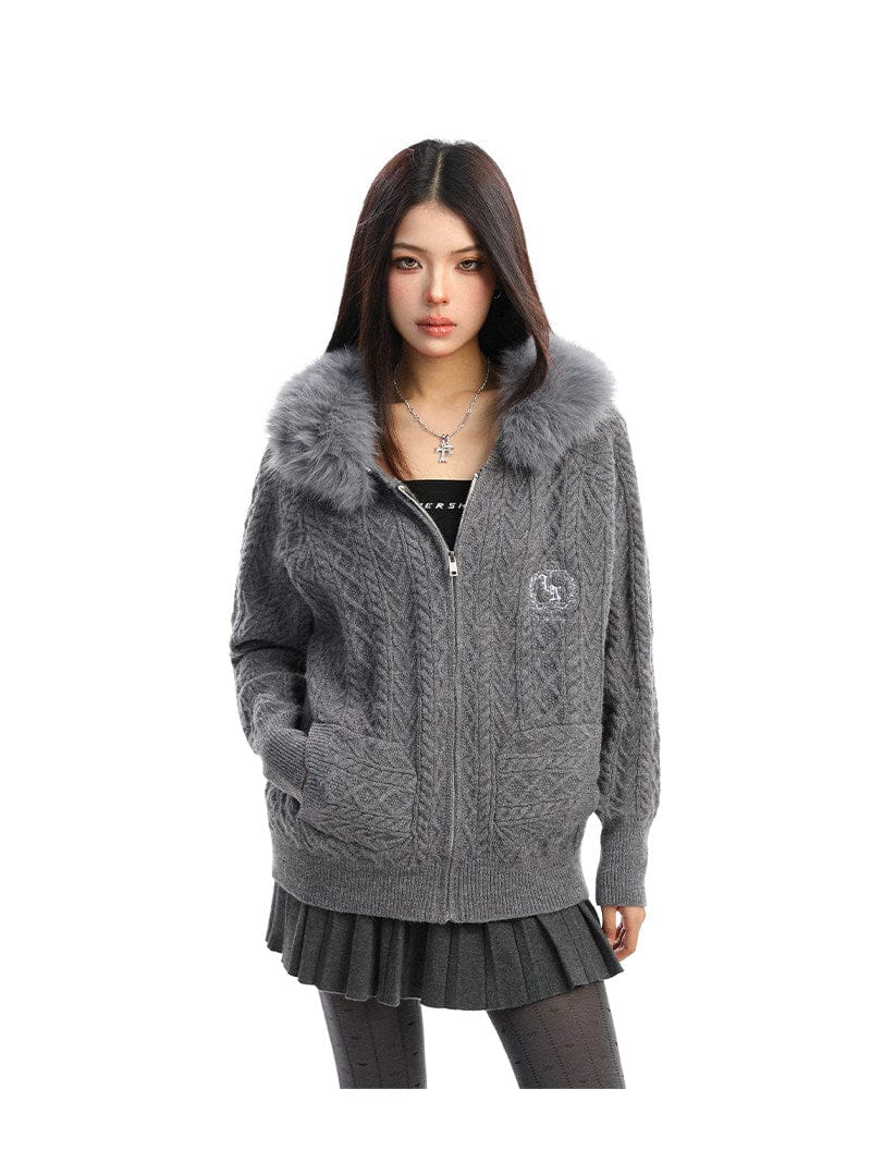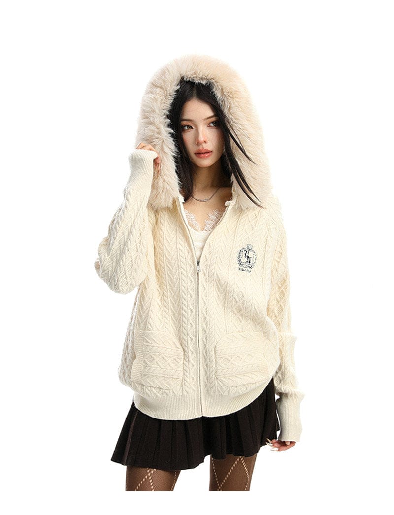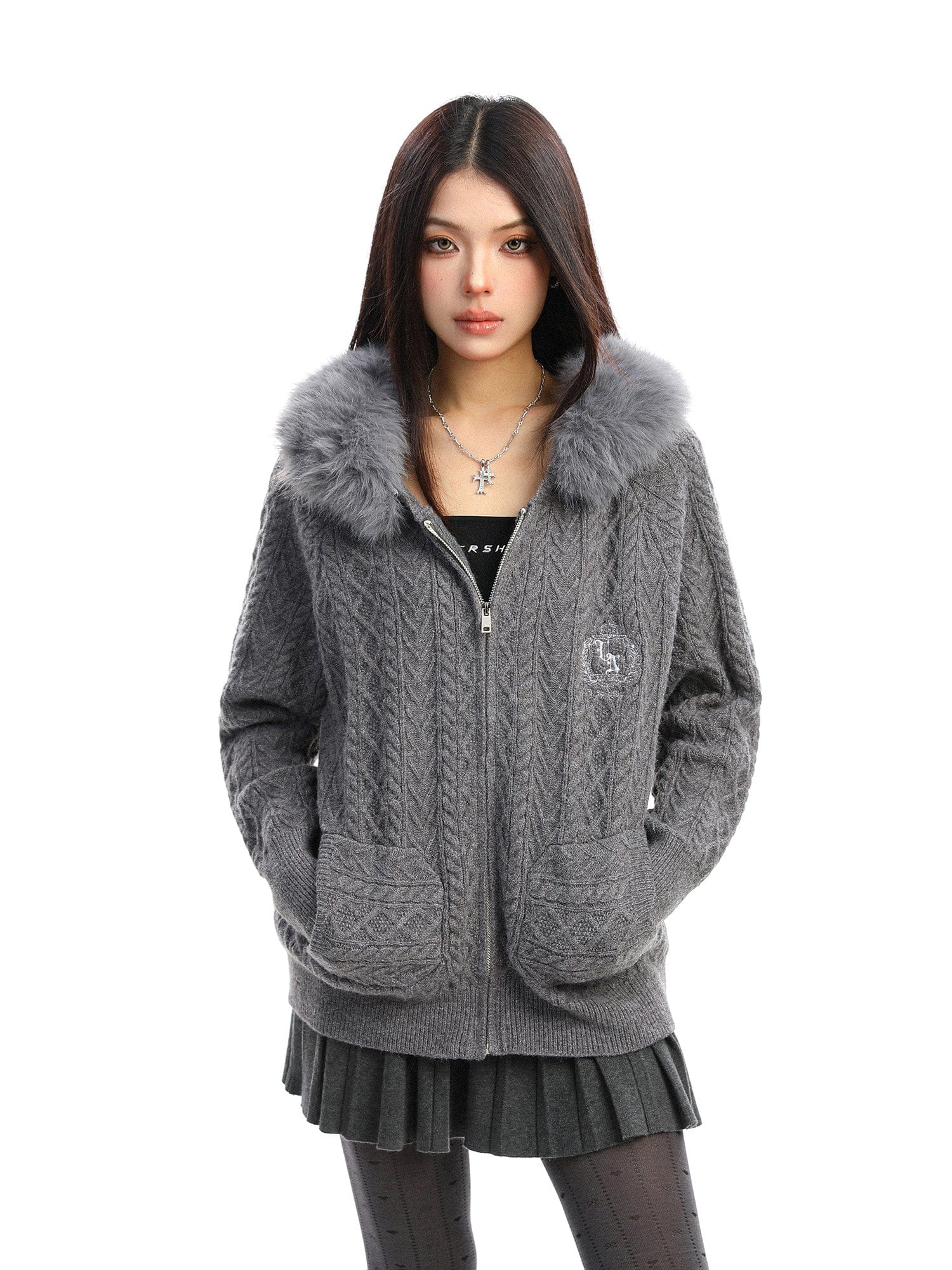 BIGGOLD Christmas and New Year fur collar hooded red sweater women's autumn and winter atmosphere warm knitted cardigan top
