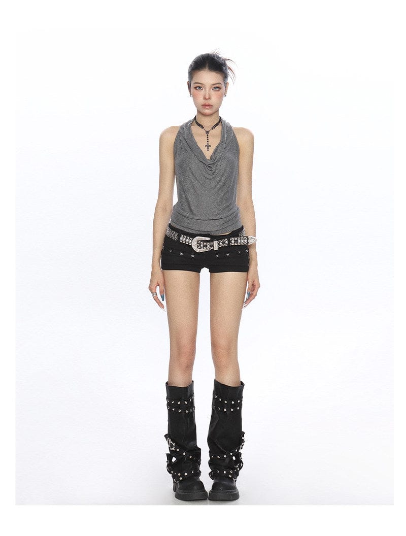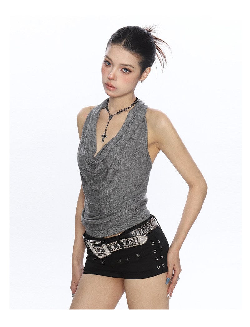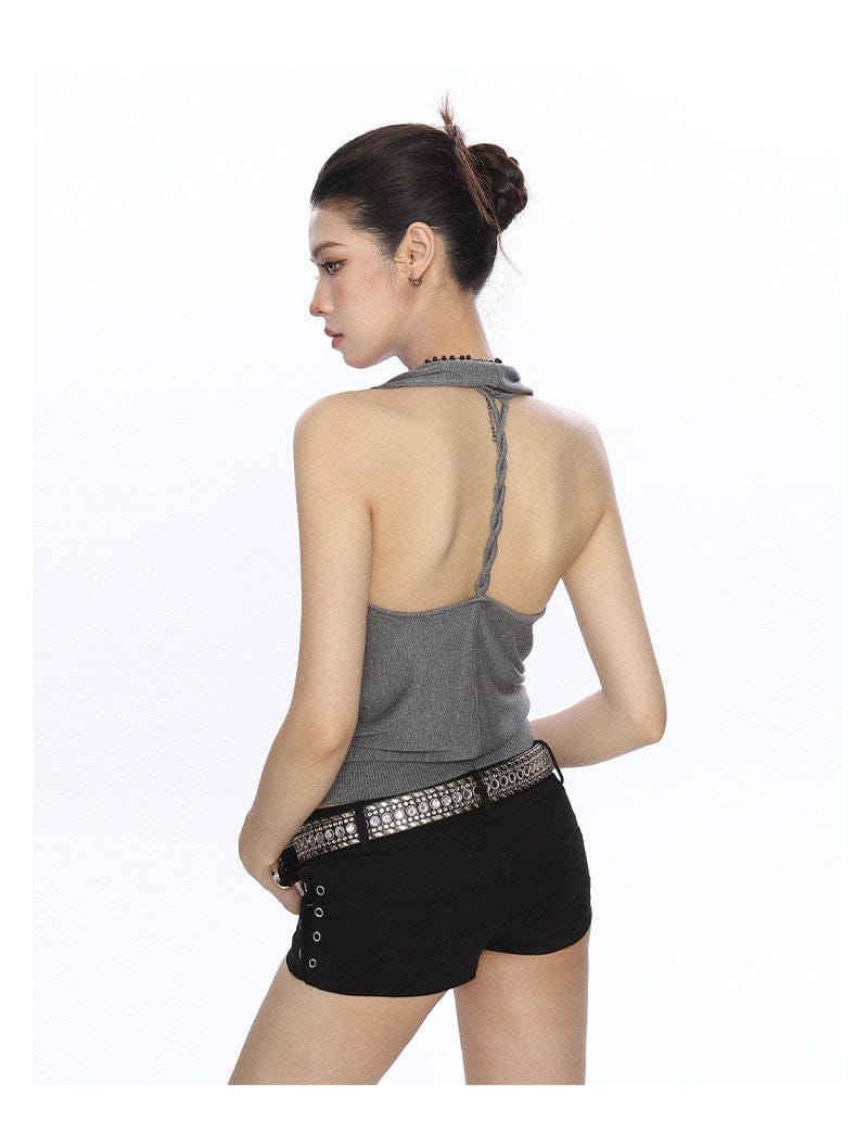 BIGGOLD high-end temperament swinging neck halterneck camisole women's summer pure desire wind slimming backless top ins