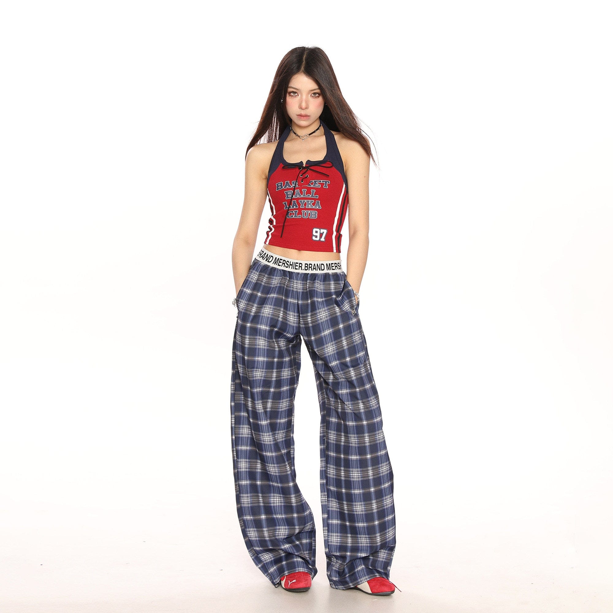 BIGGOLD hot girl sports style contrast halterneck strap suspender women's summer slim slimming short vest ins