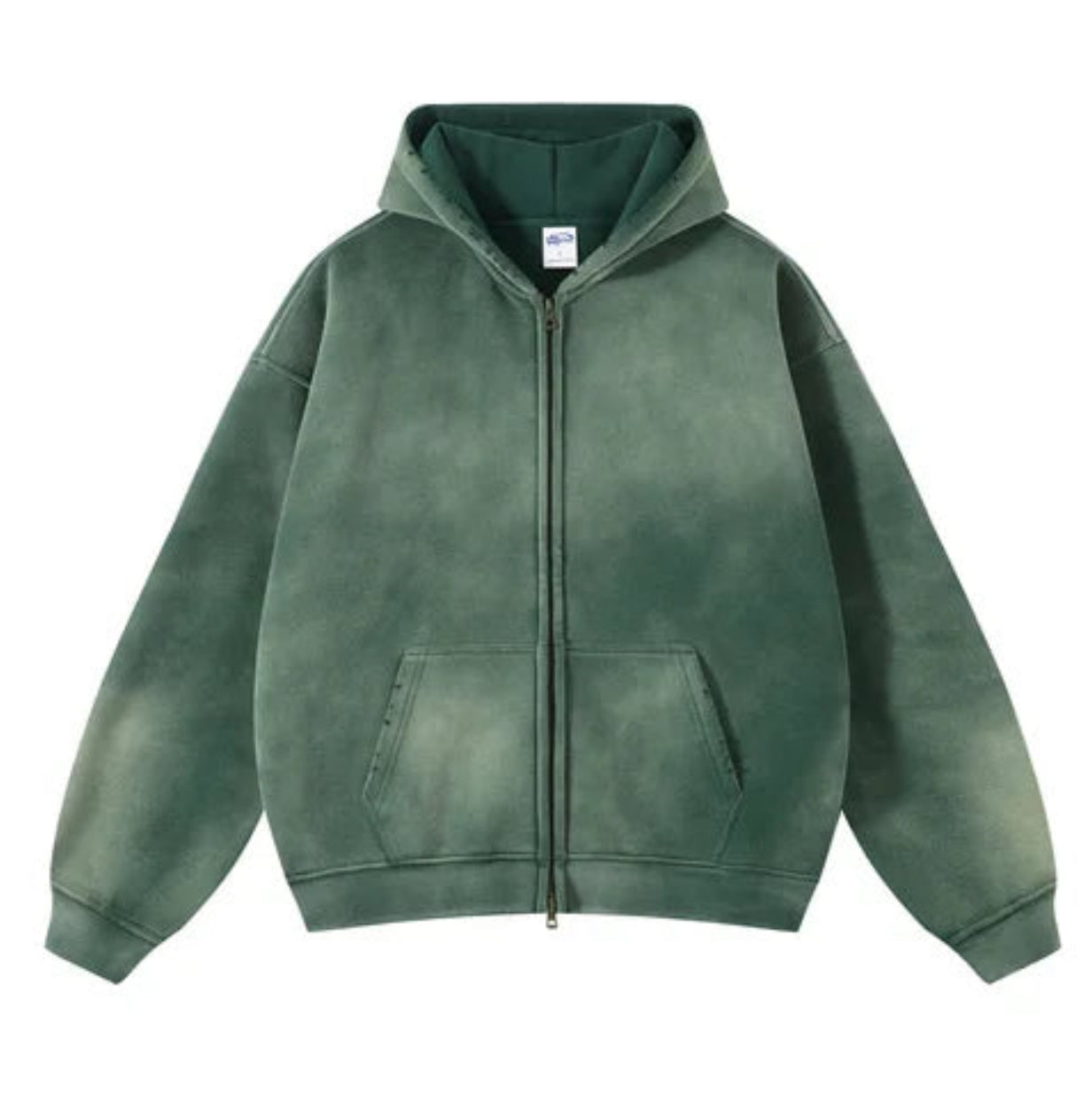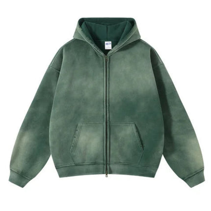 Acid-Washed Oversize Zip-Up Hoodie - 2221