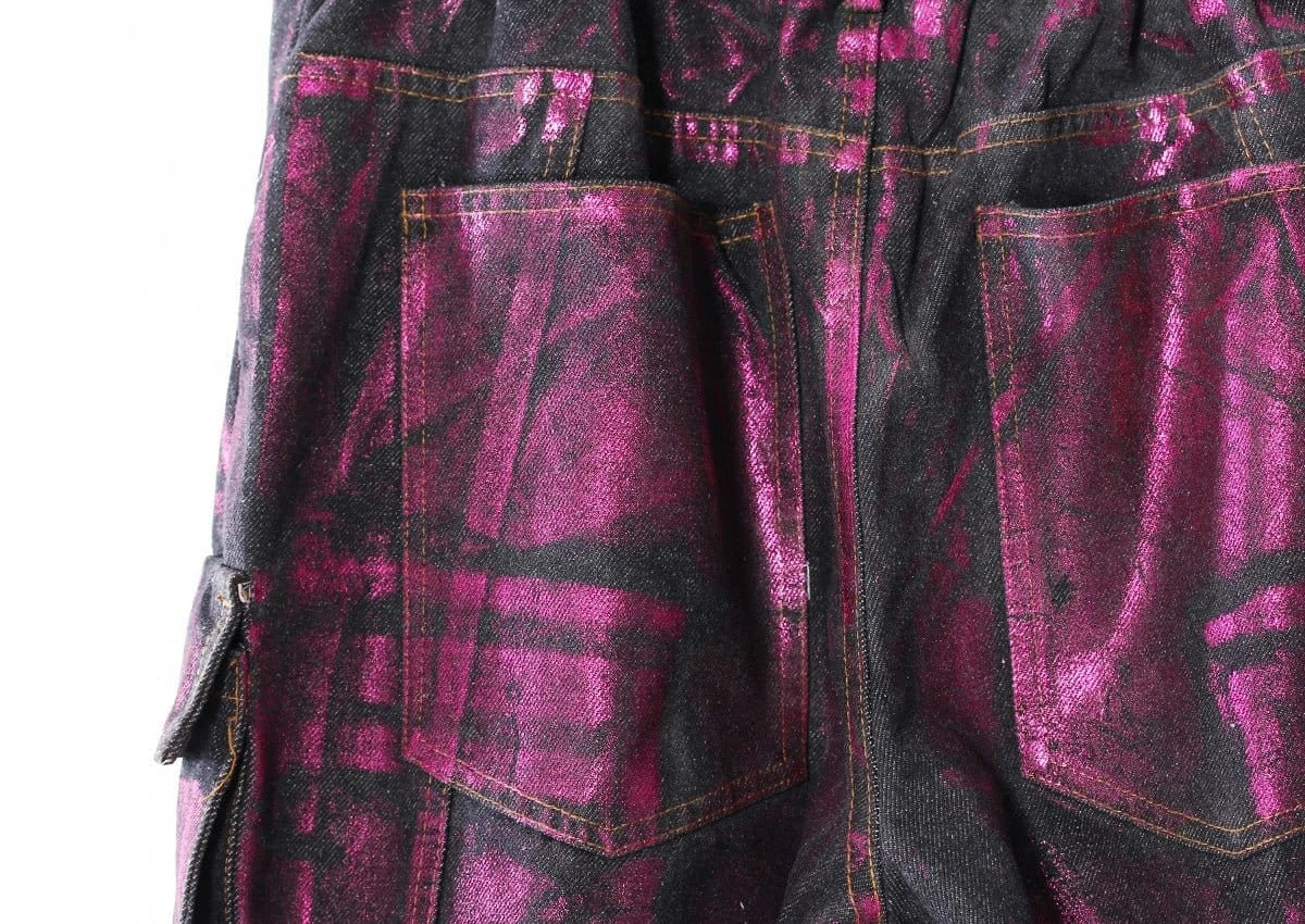 Purple Bronzing Wide-Leg Cargo Jeans