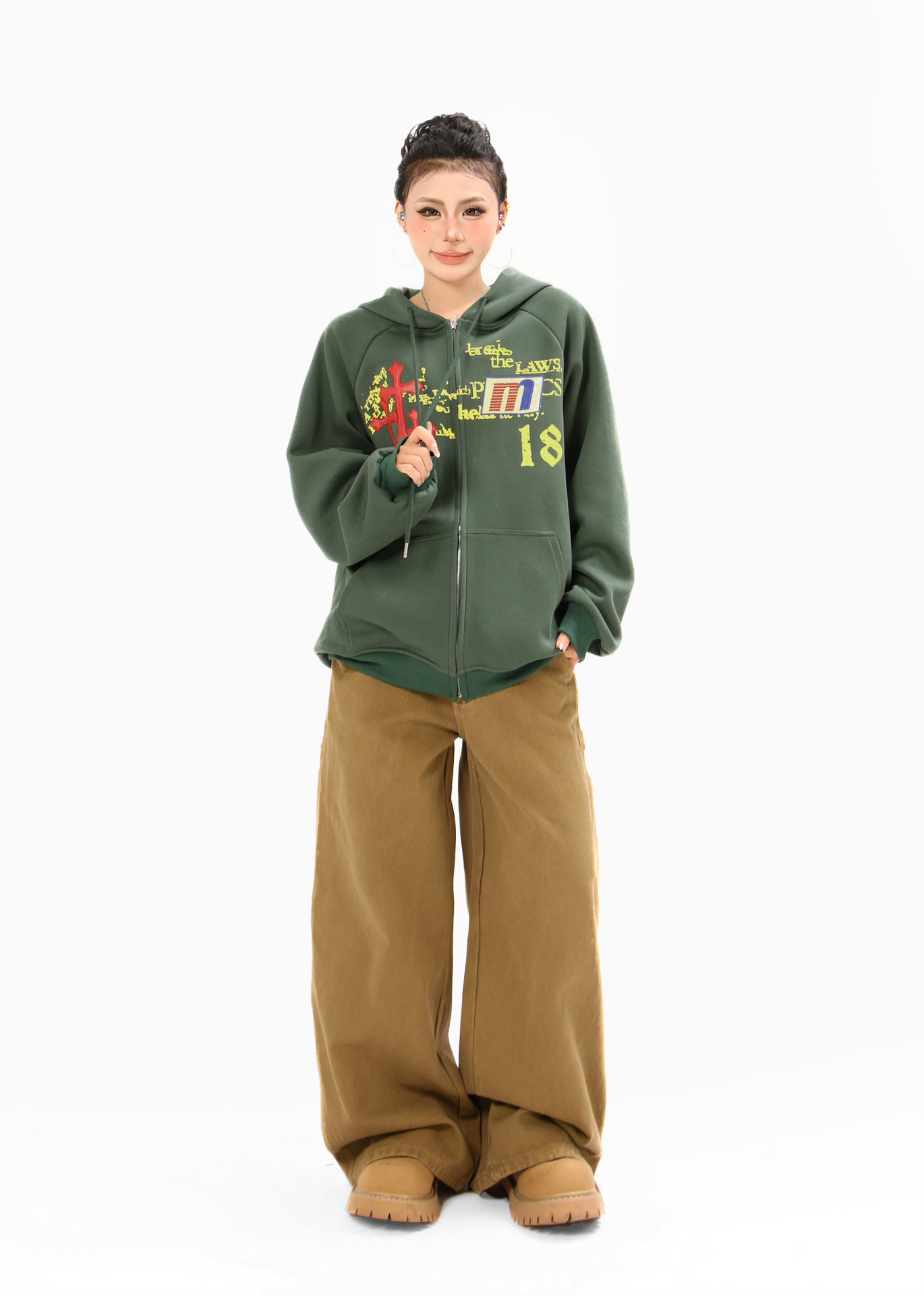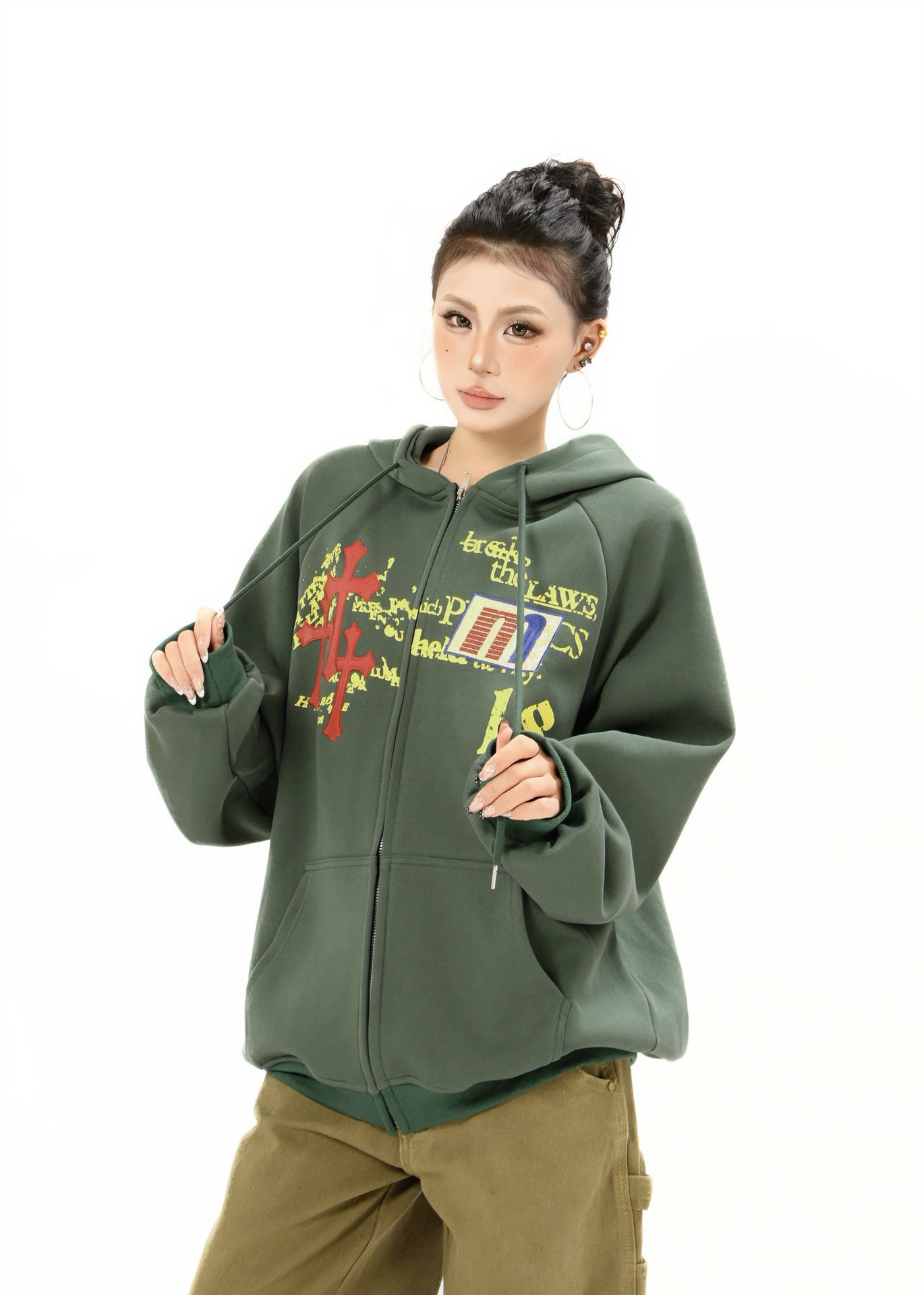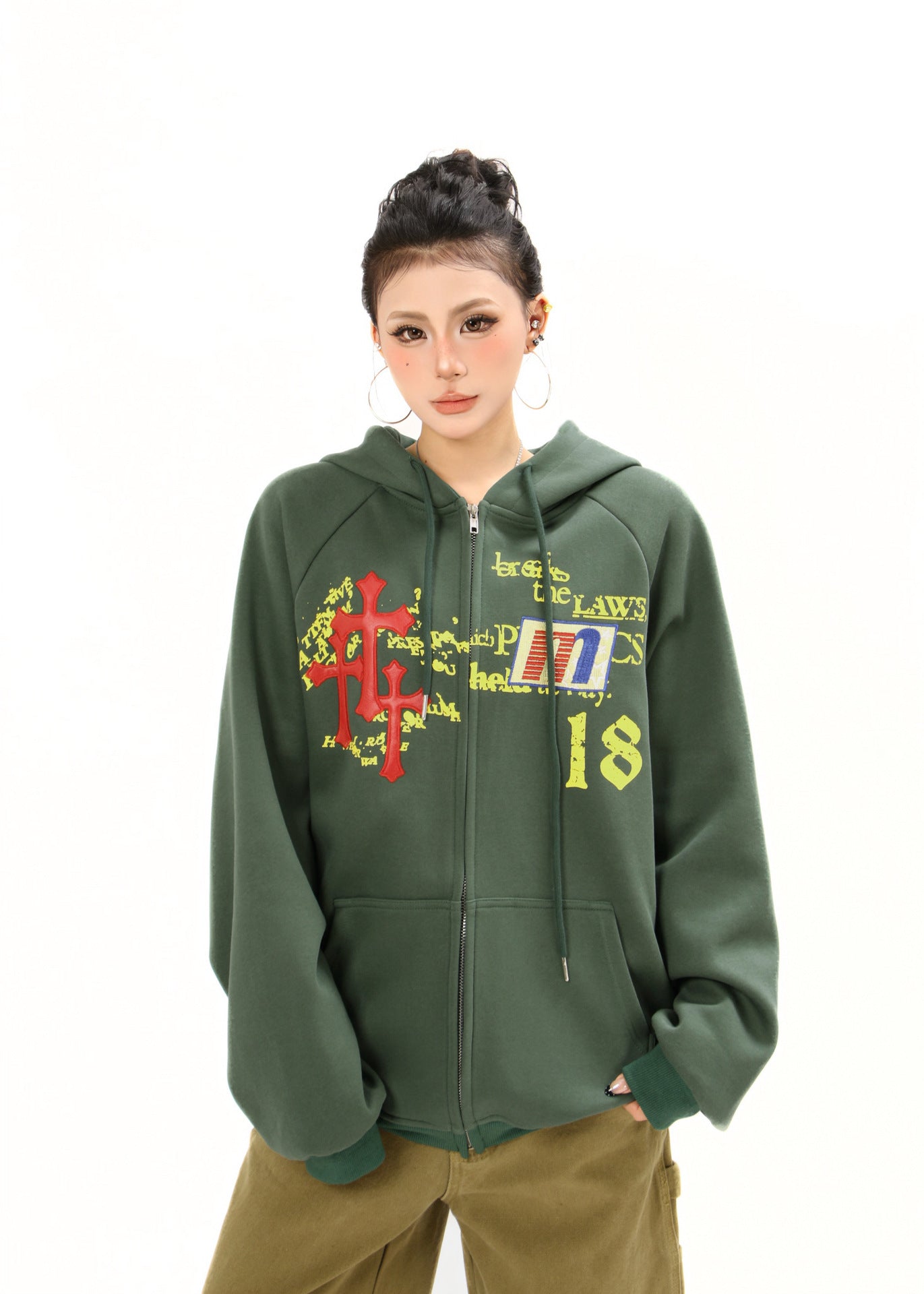 Distressed Letter Print Embroidered Hooded Sweatshirt