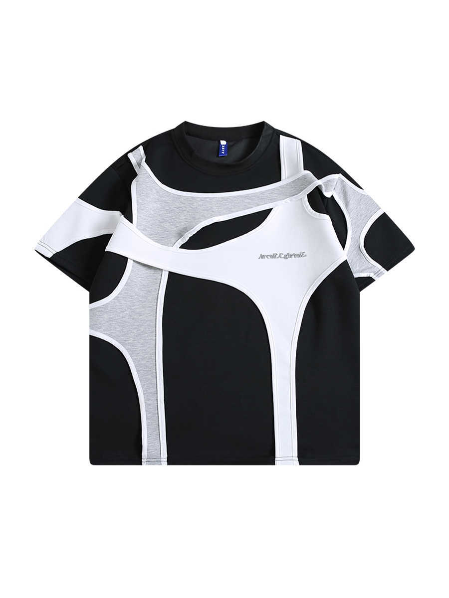 Double-layer Stitching Padded Shoulder Short Sleeve Strap T-shirt