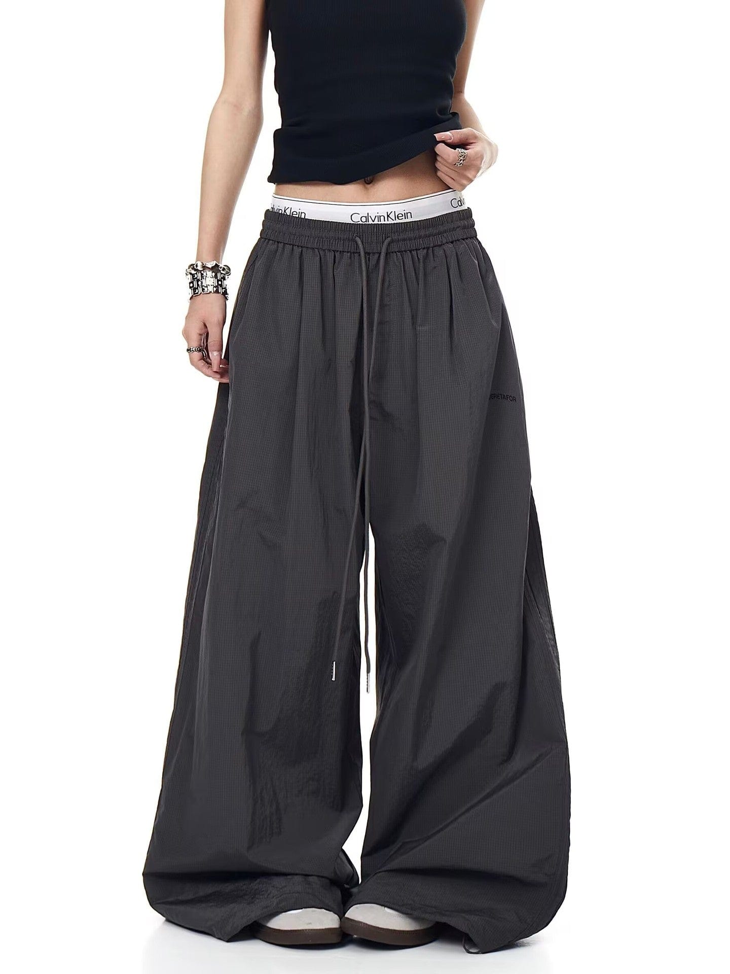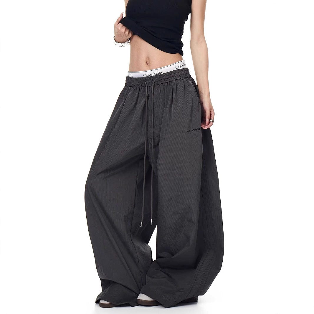 Drawstring pleats, quick-drying paratrooper pants, women's summer loose drape, wide-leg pants, hip-hop, American vintage jazz dance, scimitar pants