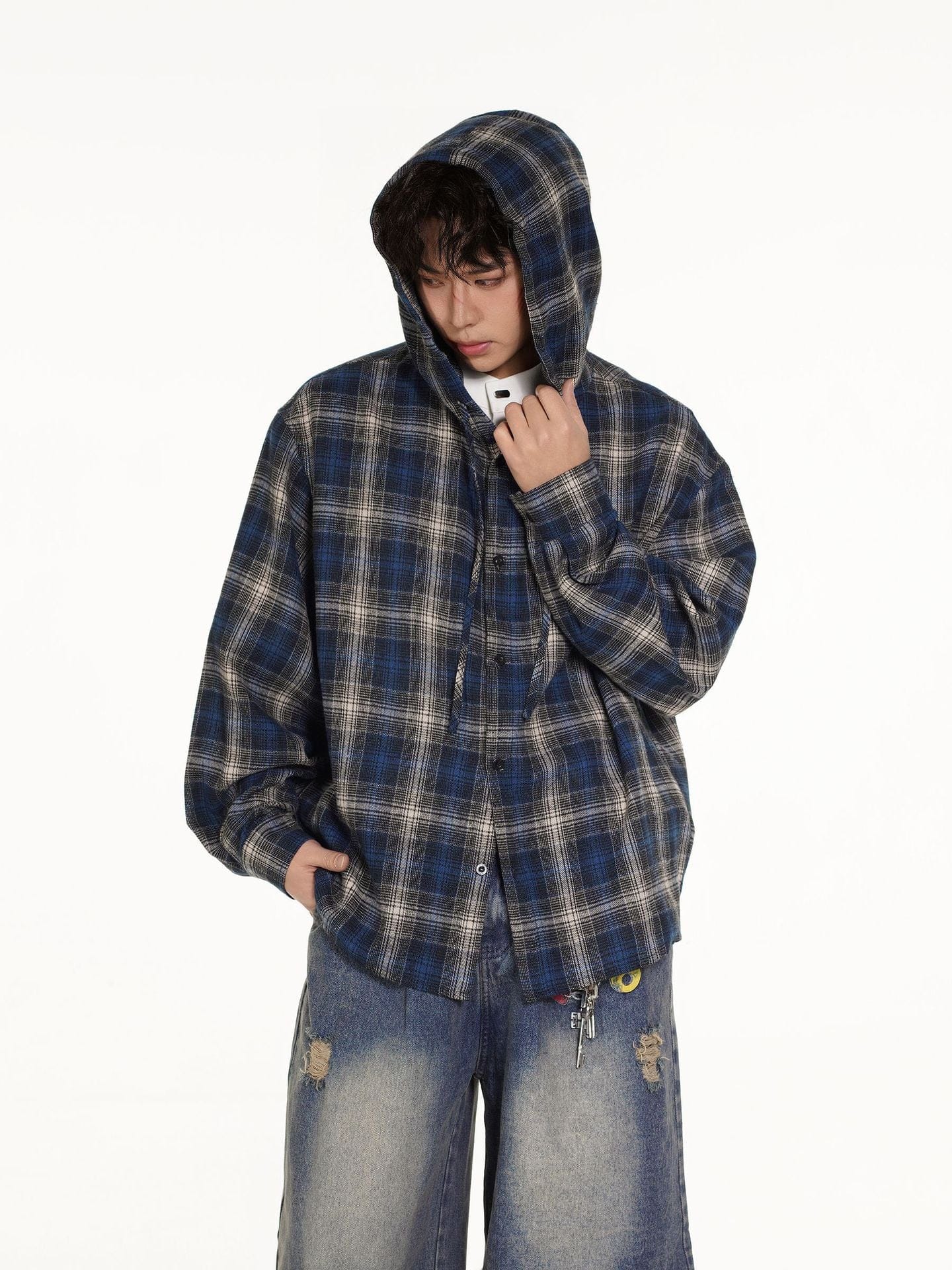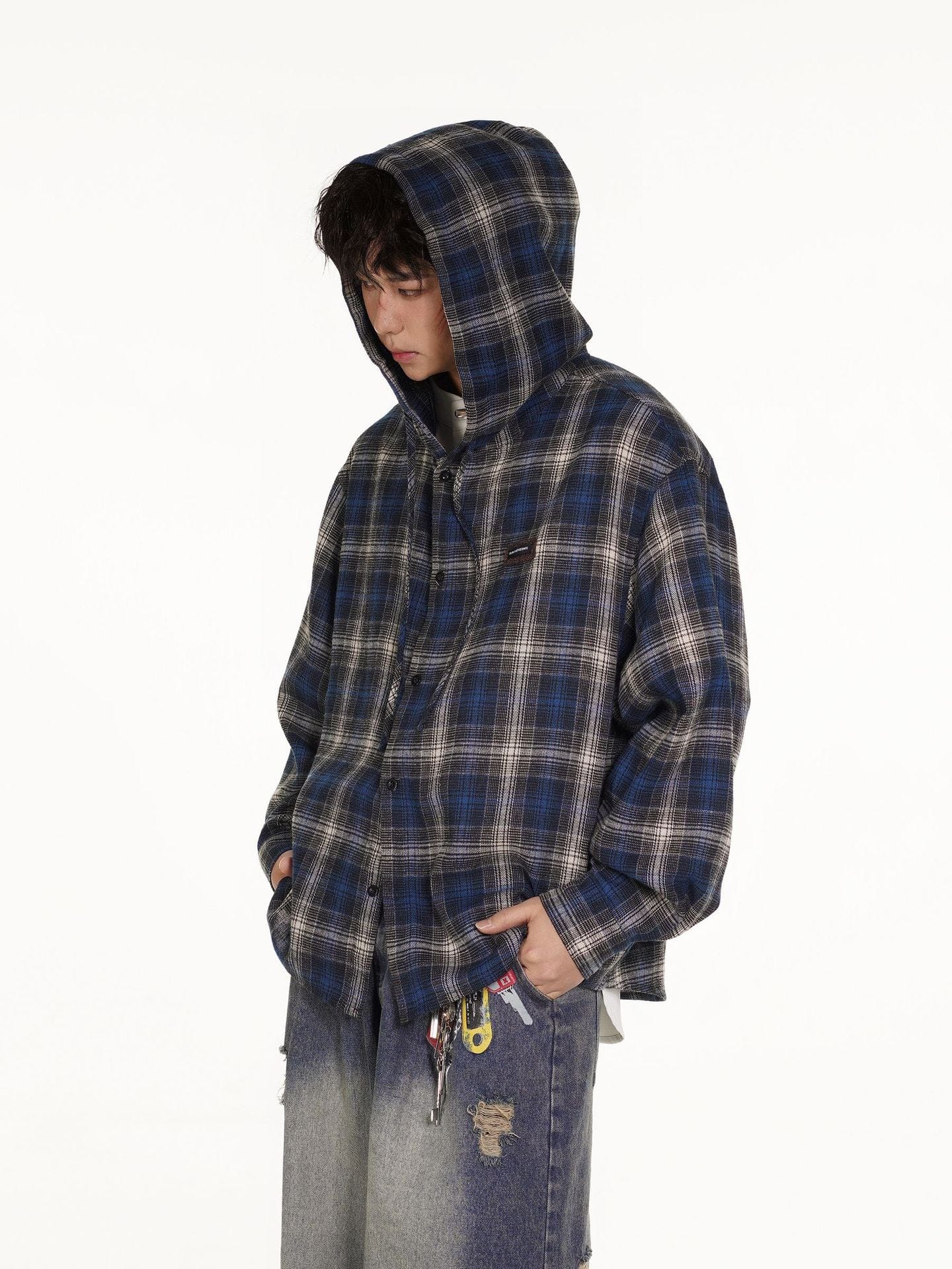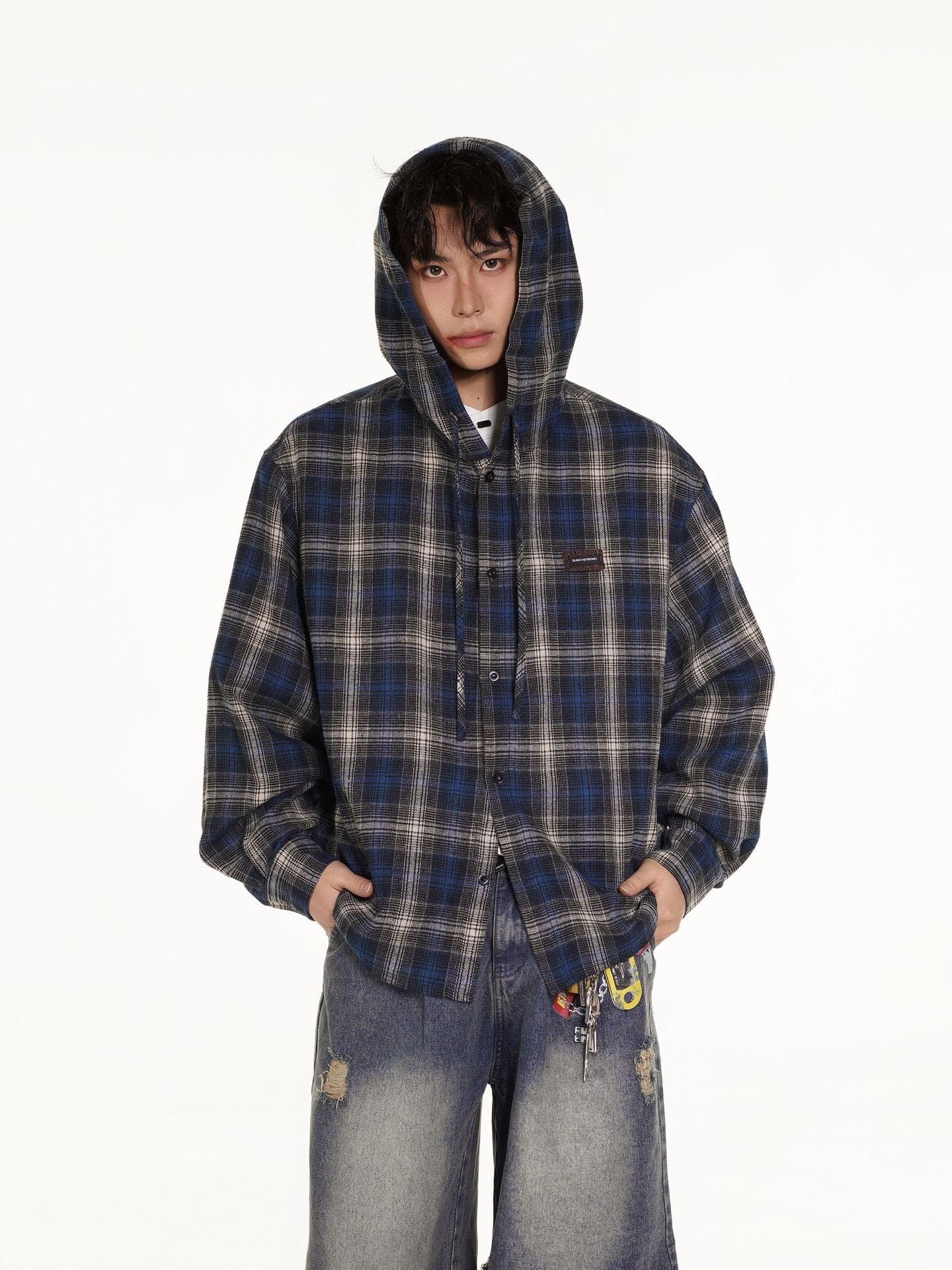 Vintage Plaid Hooded Long-Sleeve Shirt