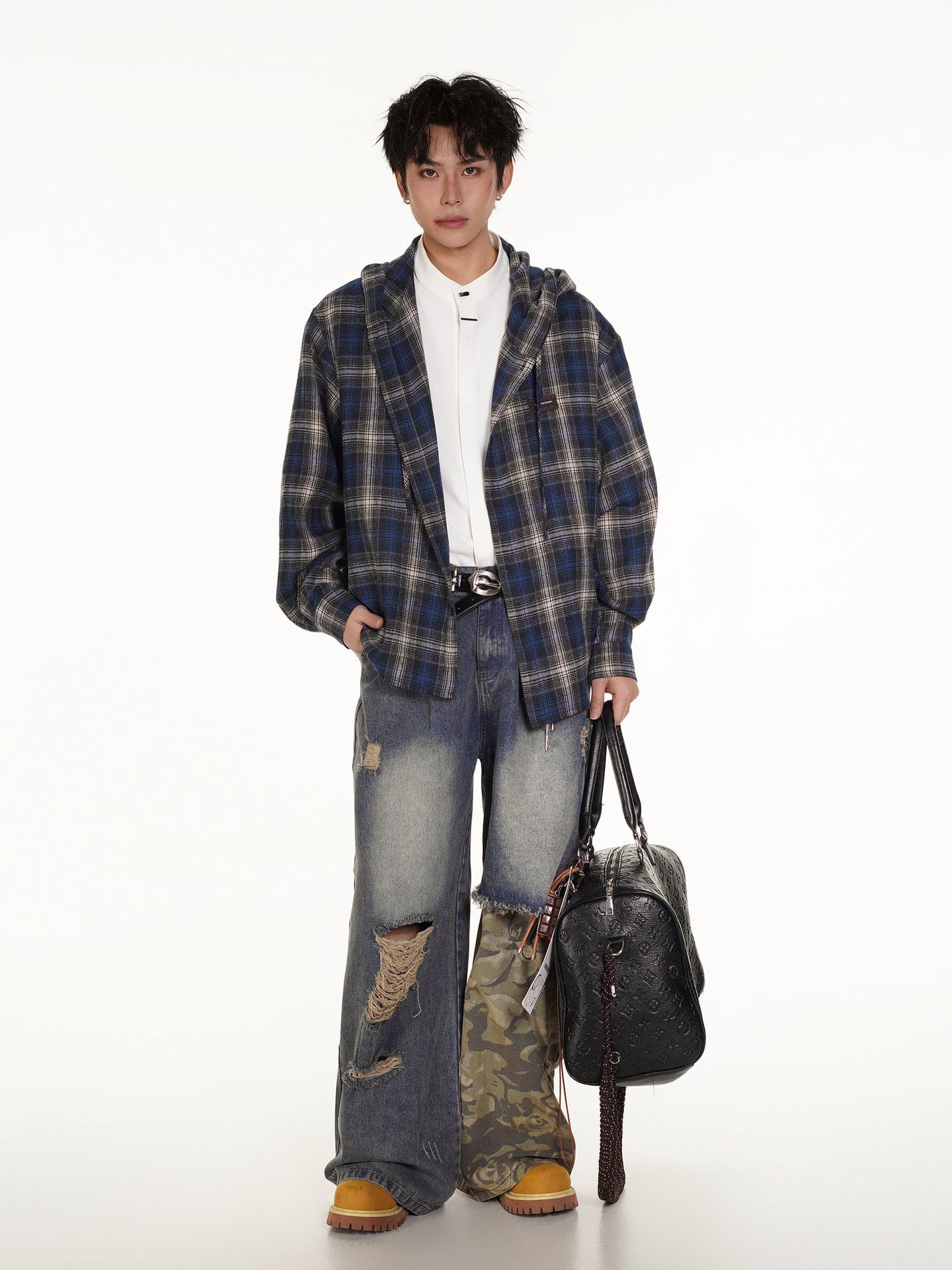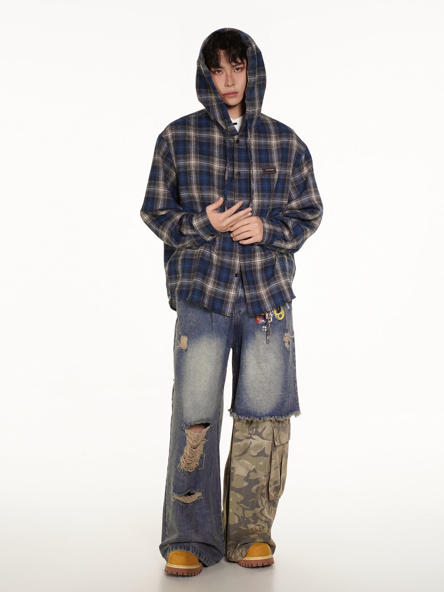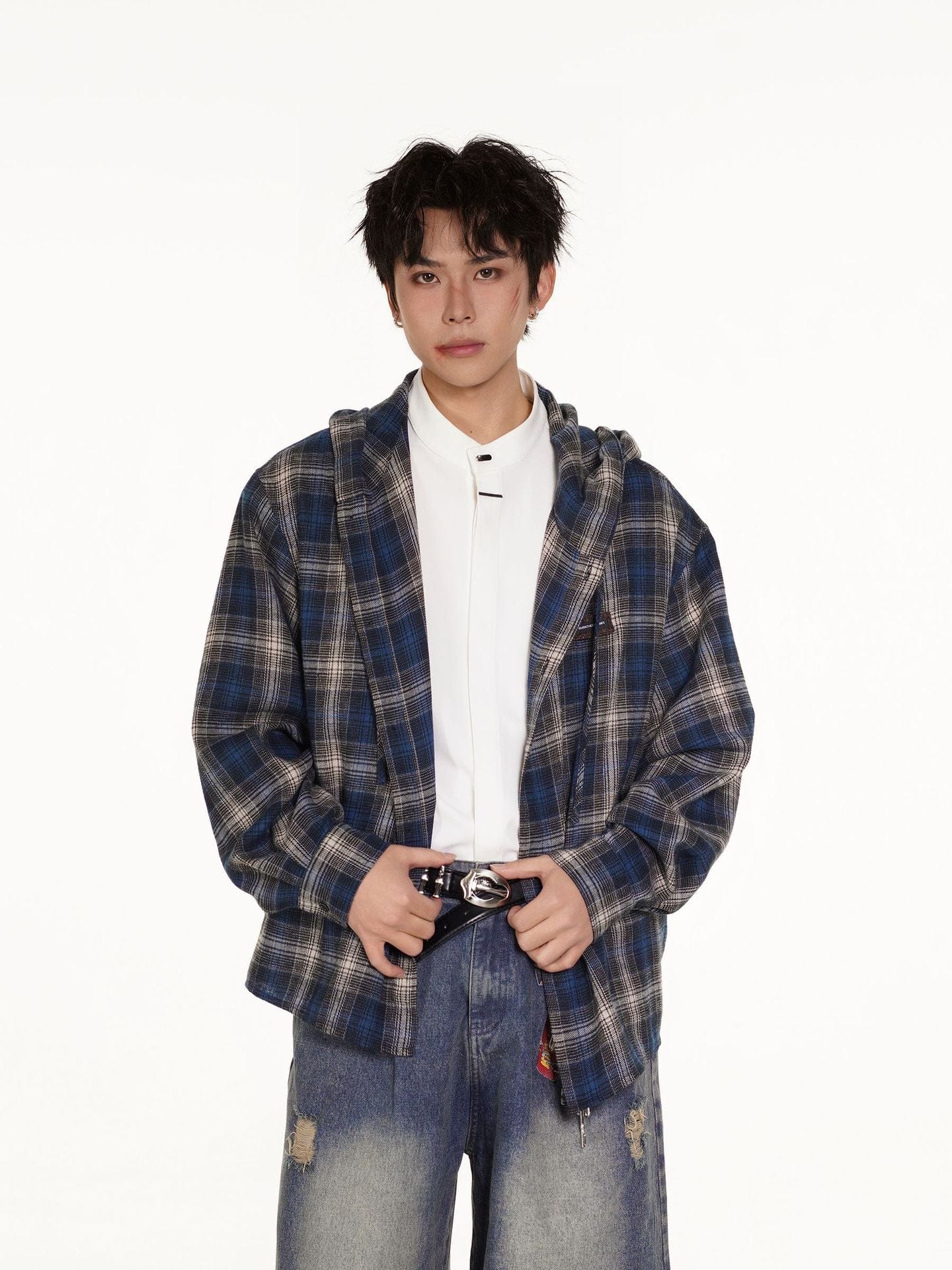 Vintage Plaid Hooded Long-Sleeve Shirt