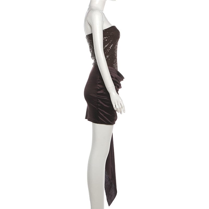 Irregular Streamer Open-Back Dress