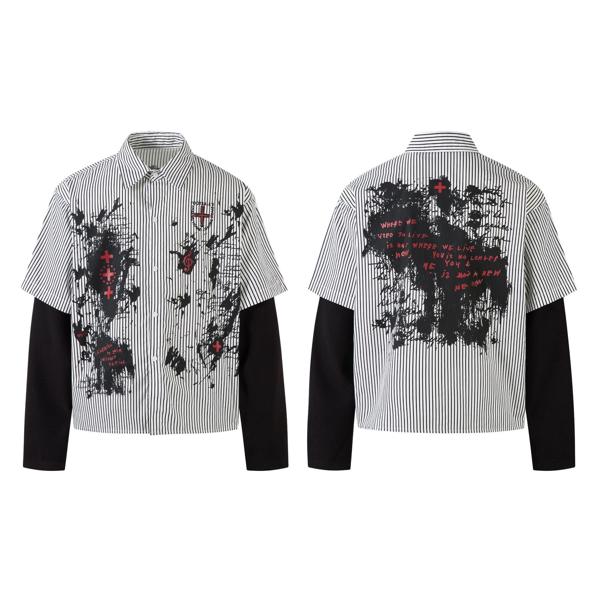 fake two-piece striped shirt with long sleeves