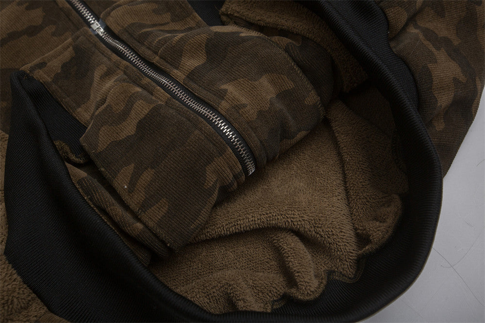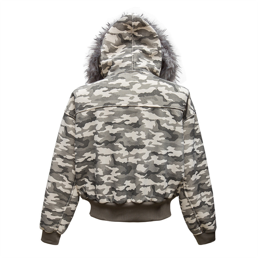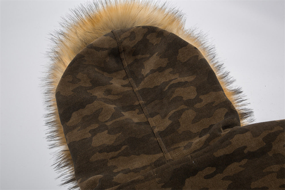 Fur collar camouflage, deconstructed splicing, thickened cargo jacket