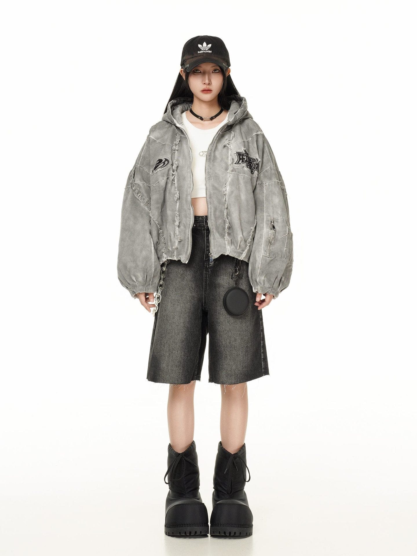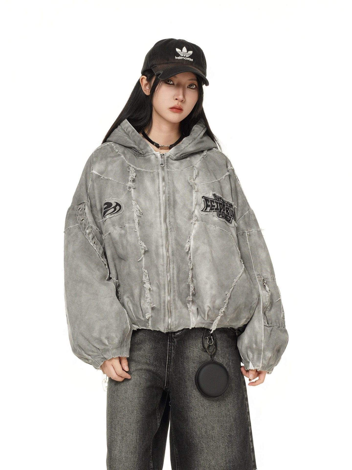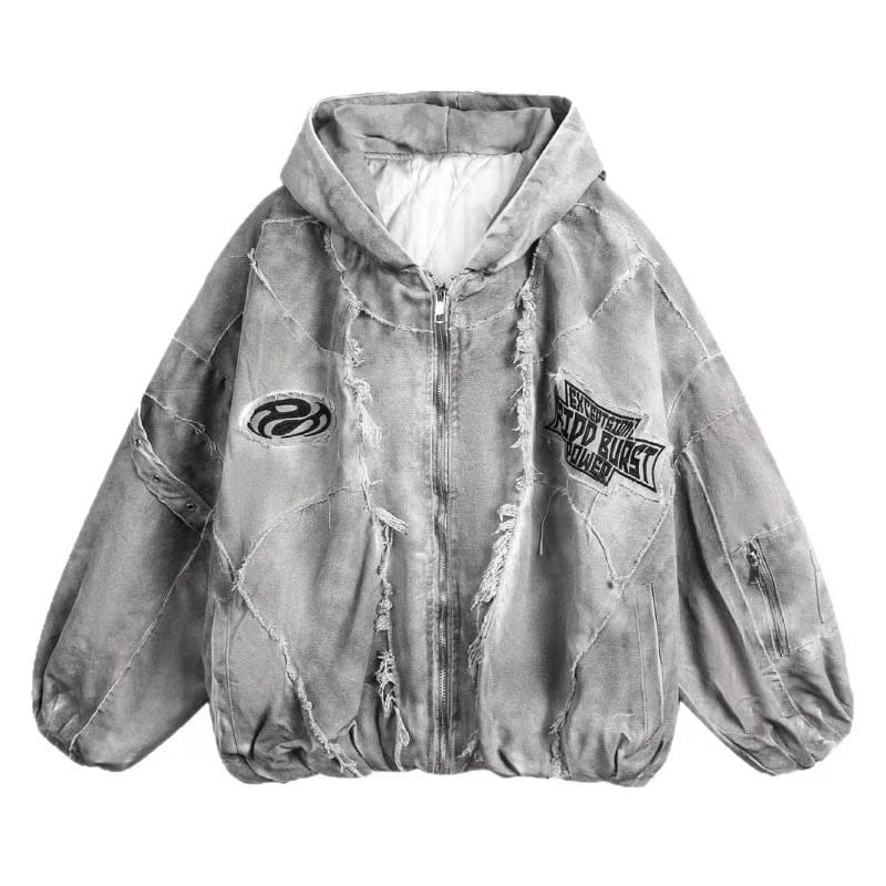 GUO WEAR wasteland style, national tide, mottled distressed overalls, men's and women's winter cotton clothes, casual and versatile