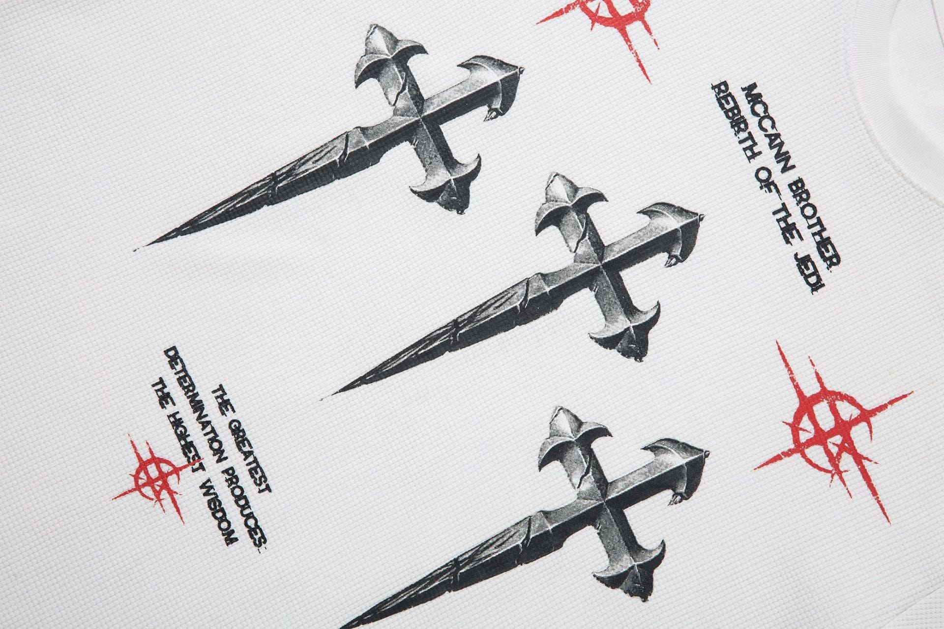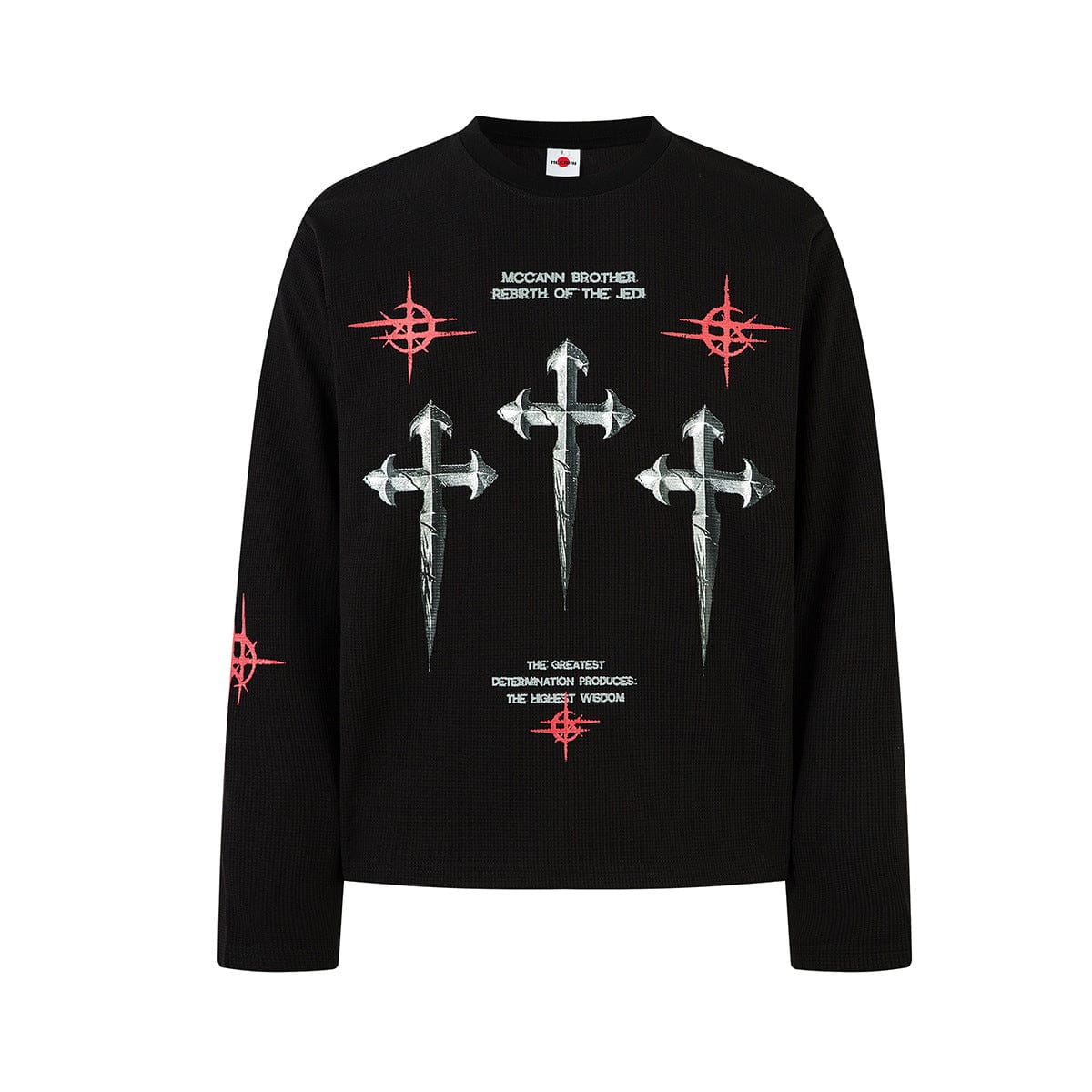 Hip-Hop Dark Cross Graphic Long Sleeve Tee