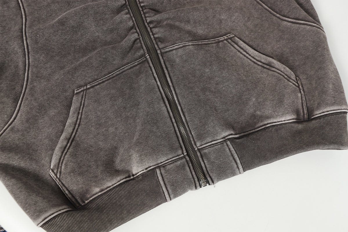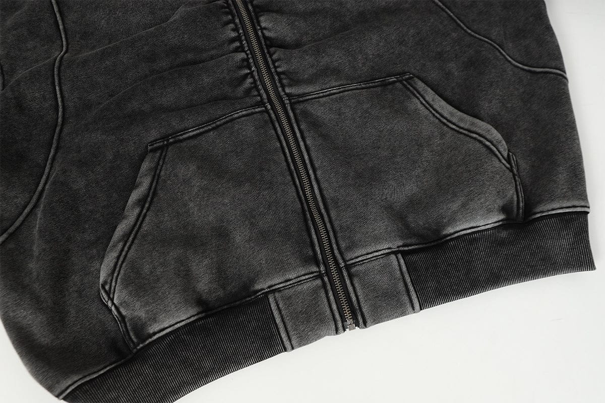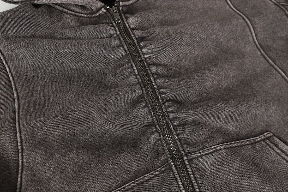 Jiayiku Men's Fall 2025 New American Street Personality Hoodie Pleated Washed Old Hoodie with Fleece