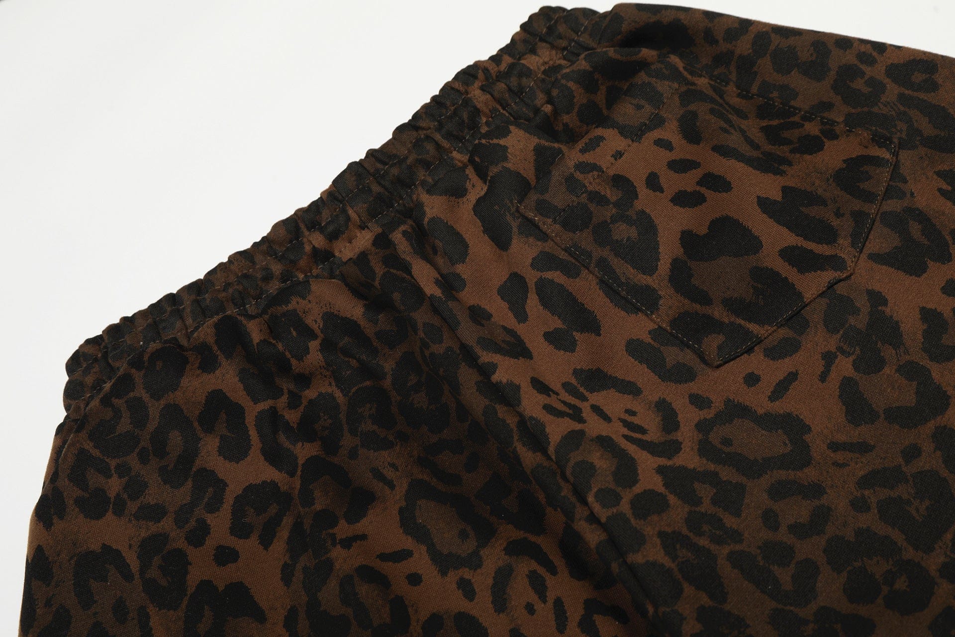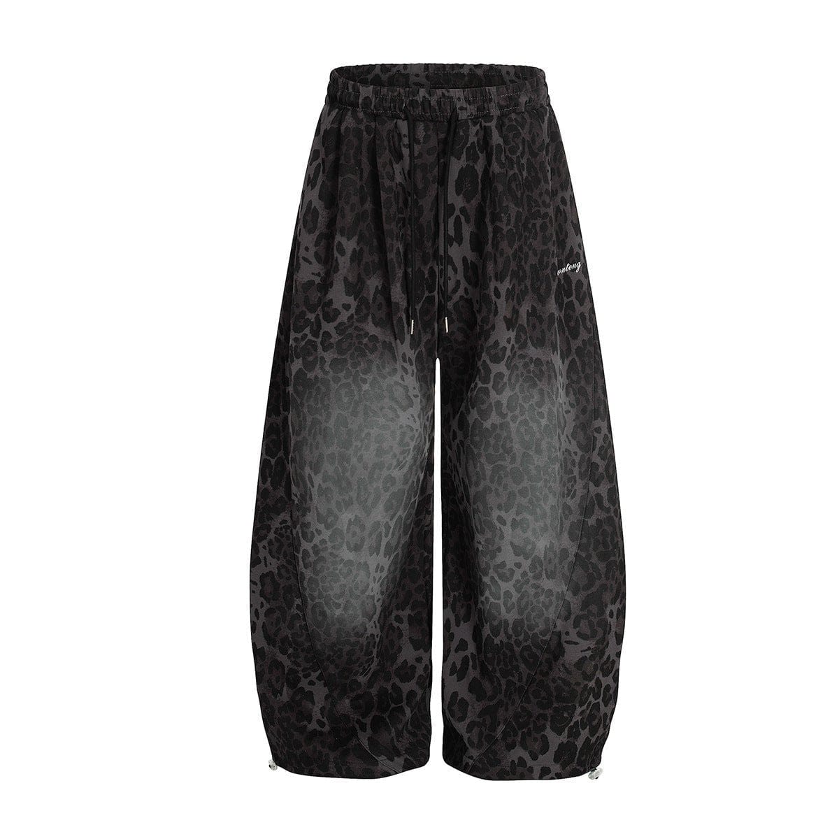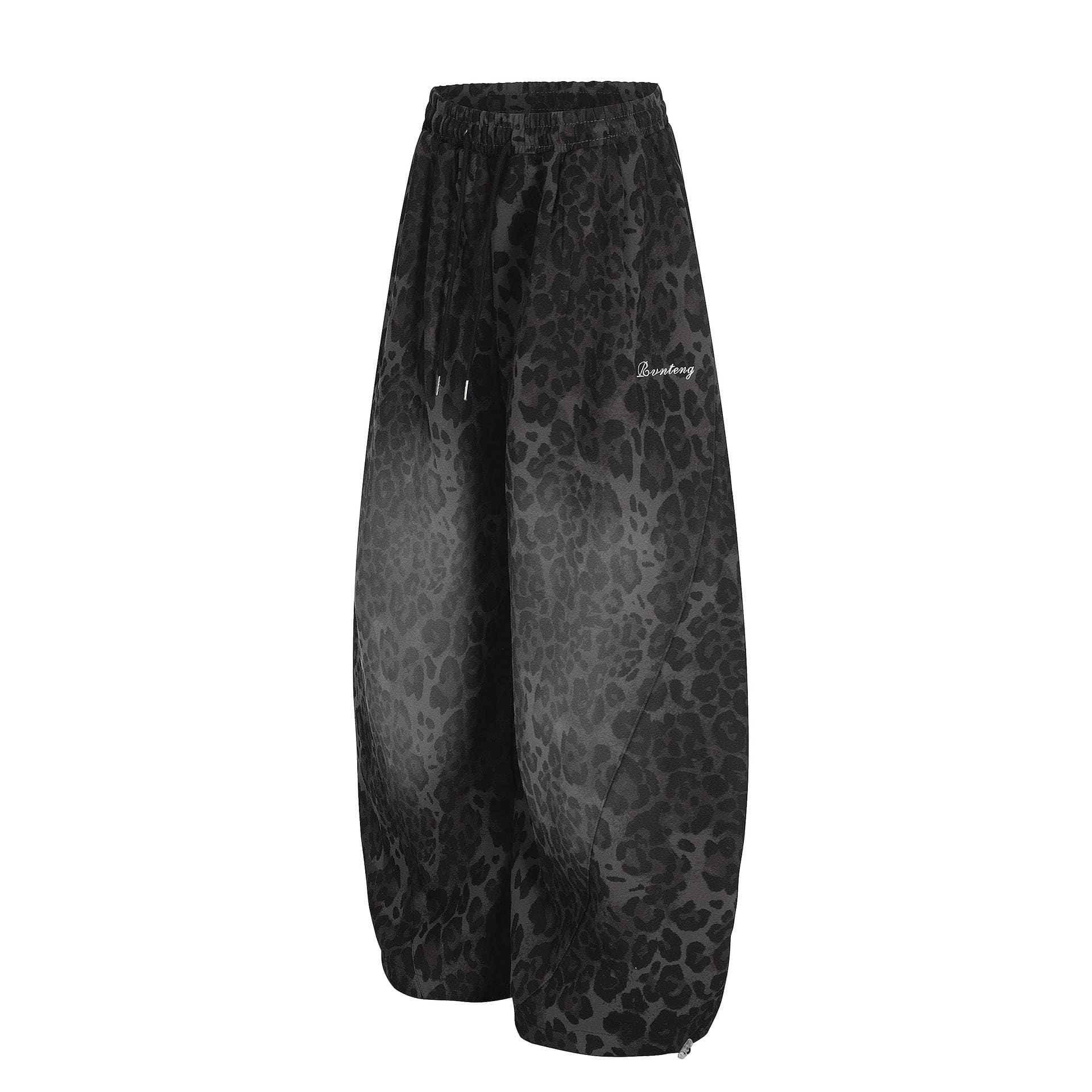 Jiayiku trendy brand 2025 American retro leopard print sweatpants scimitar pants men's and women's vibe ruffians handsome loose wide-leg pants