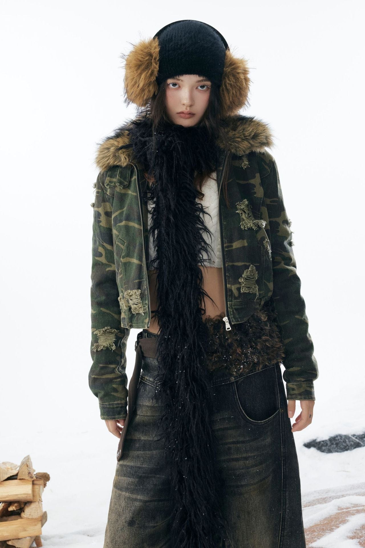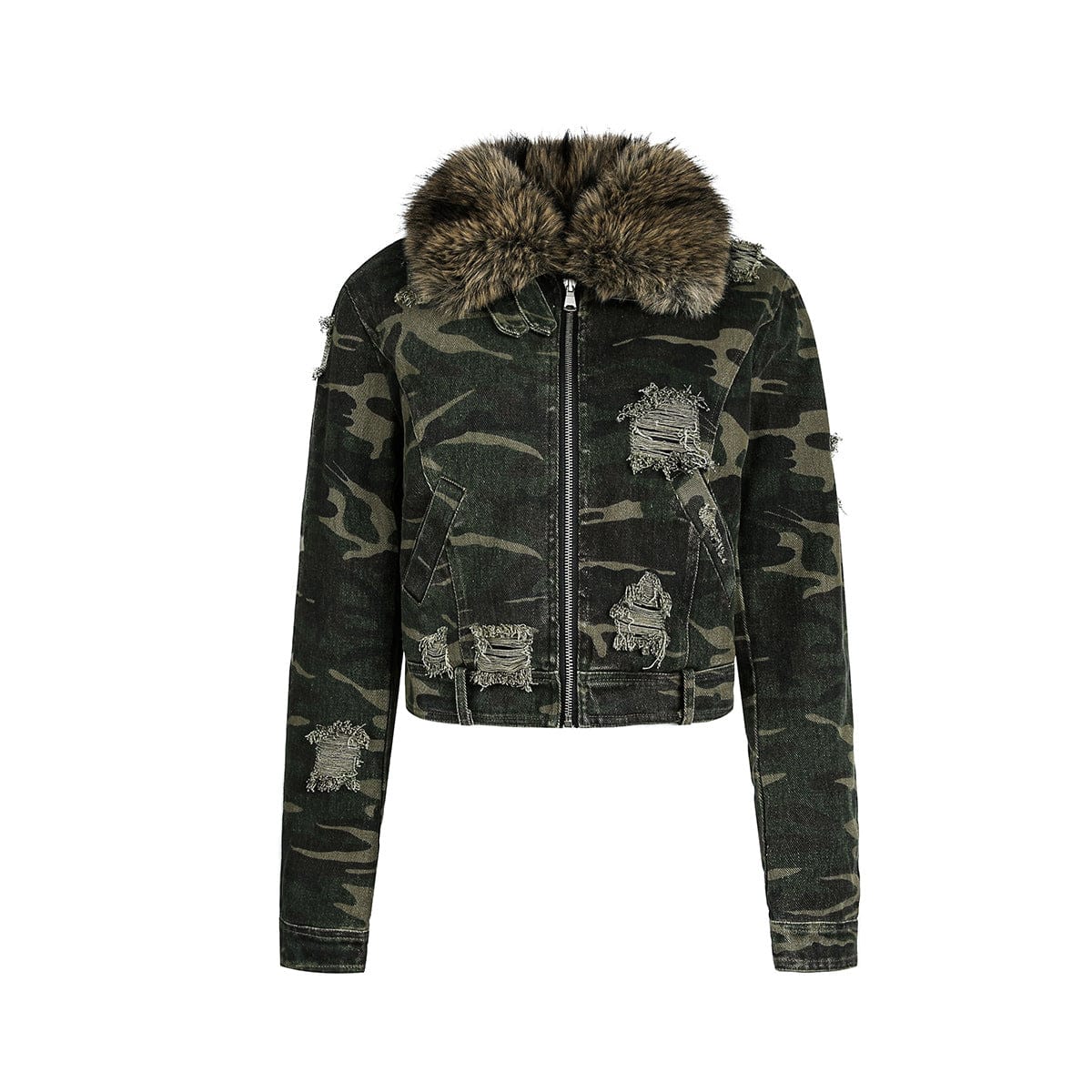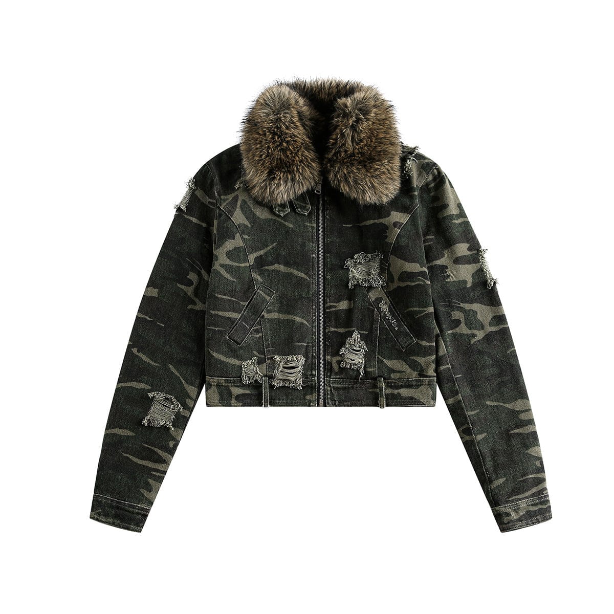 Camo Wash Detachable Fur Jacket