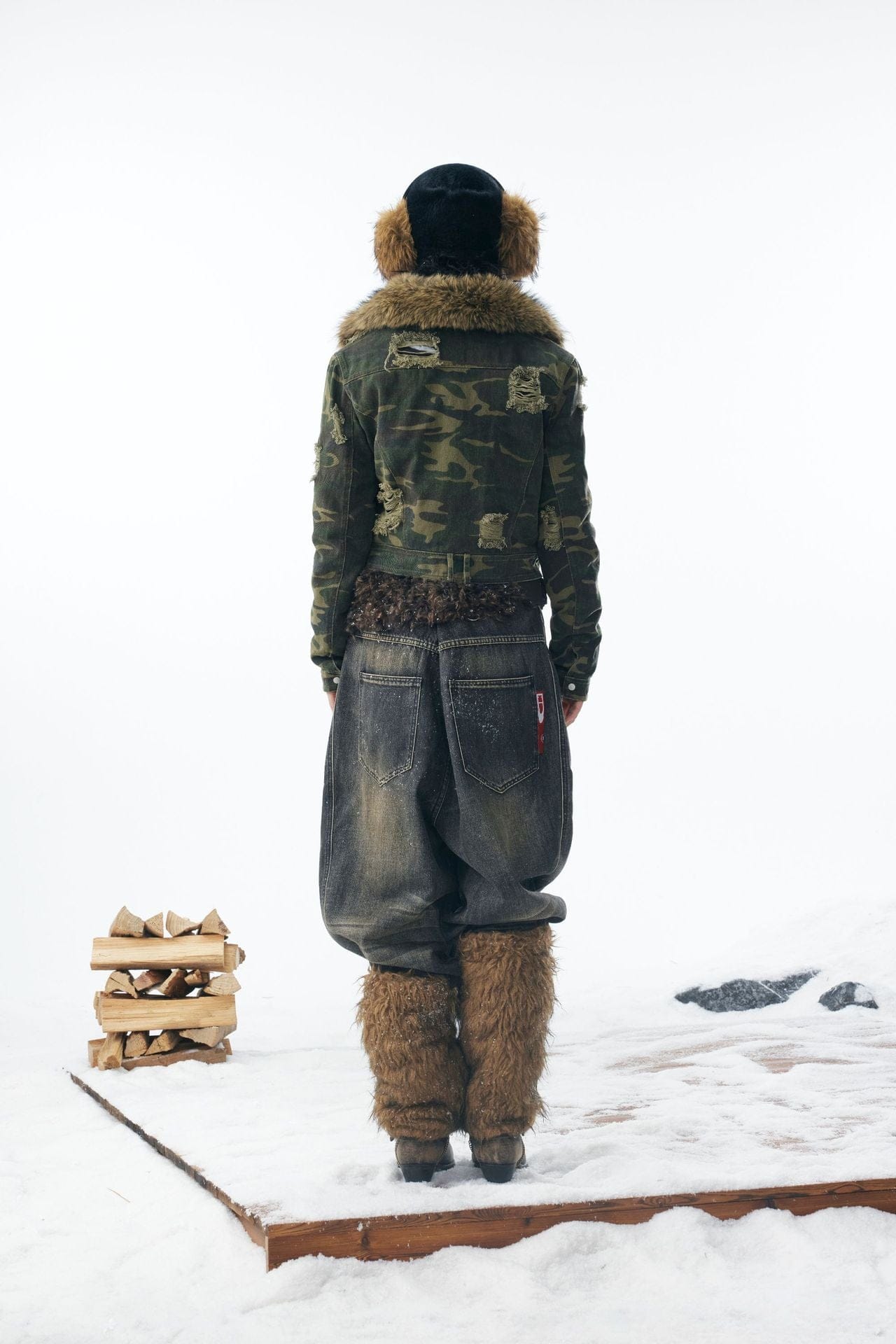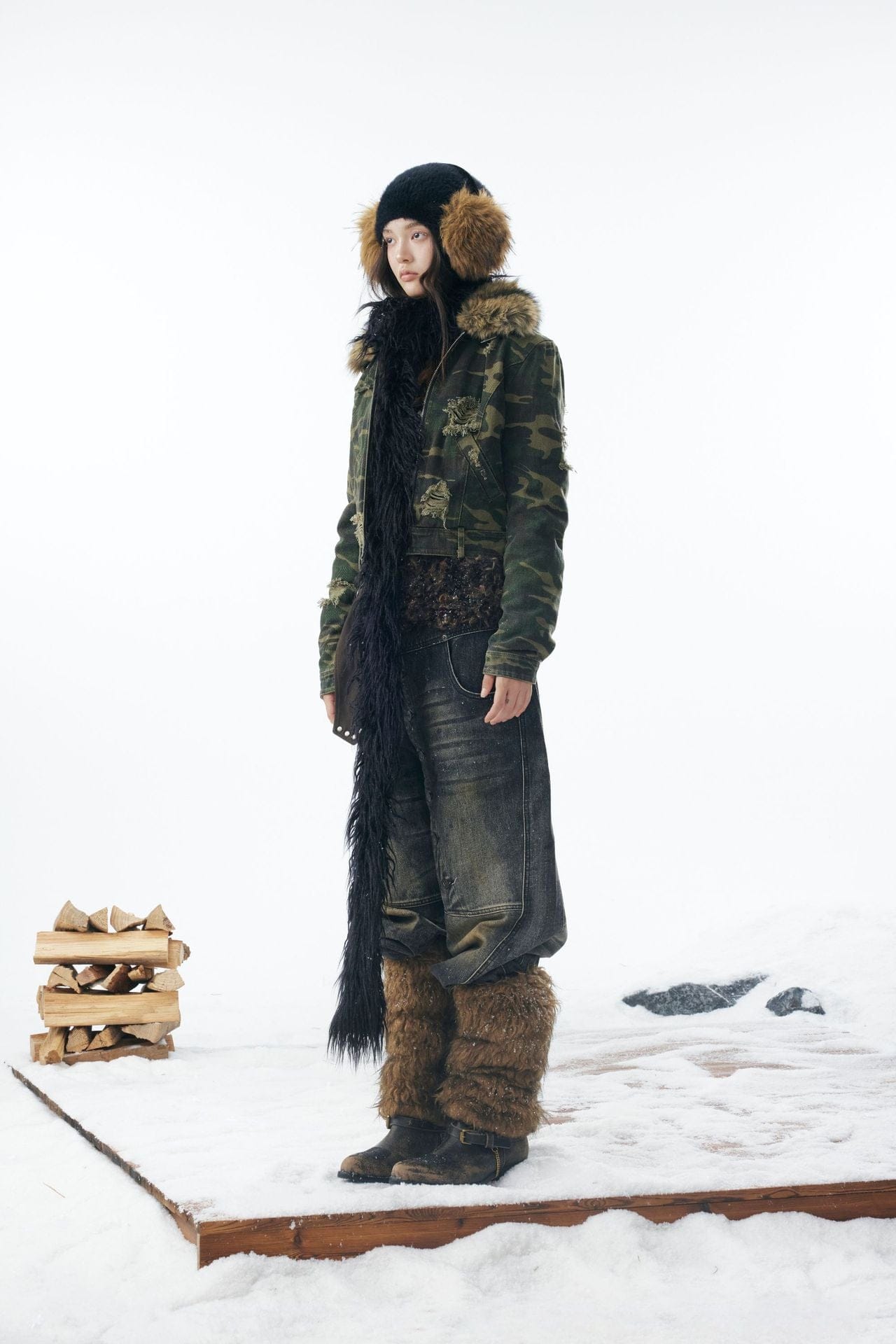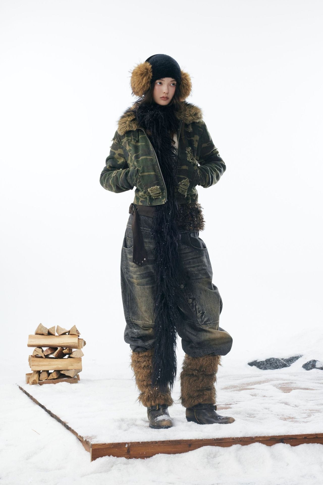 Camo Wash Detachable Fur Jacket