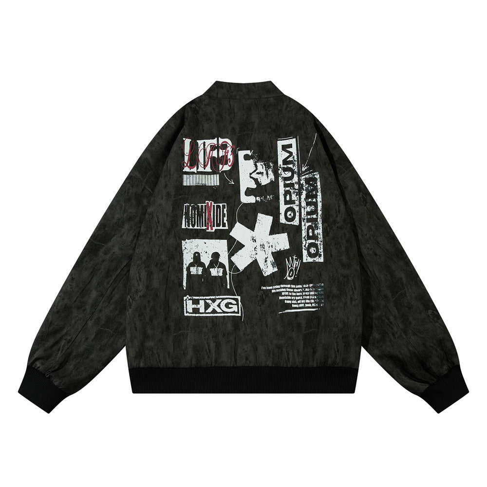 Letter Print camel leather Jacket—7431