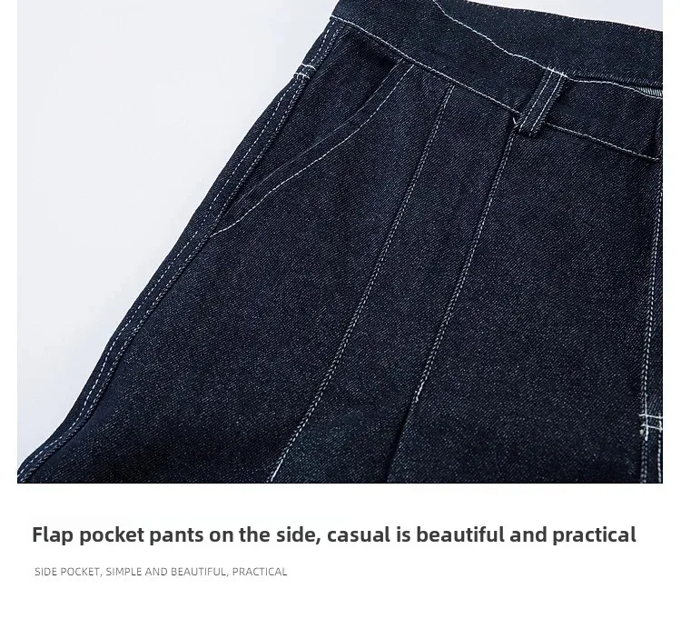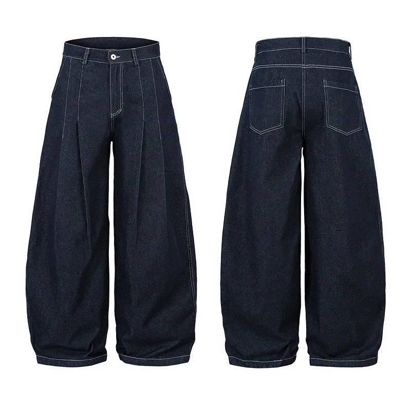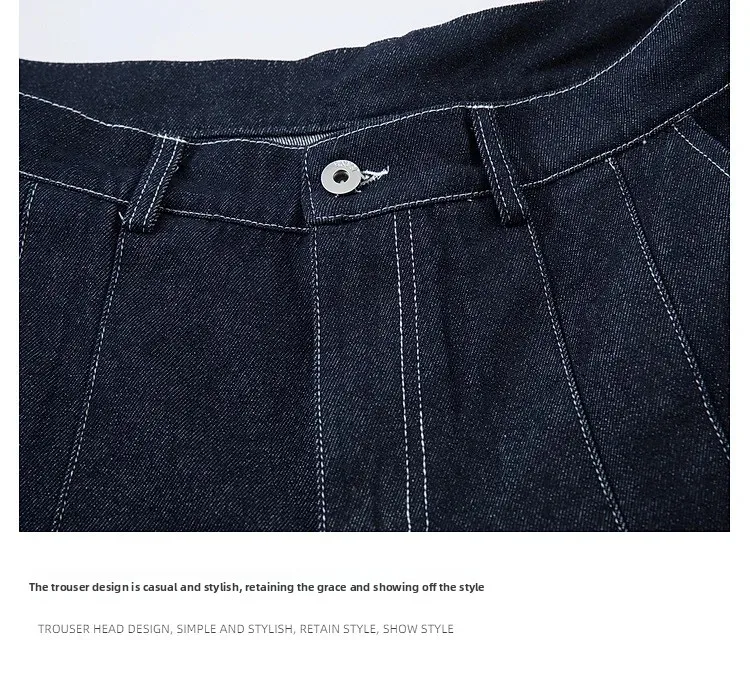 High Waist Pleated Blue Jeans—1007