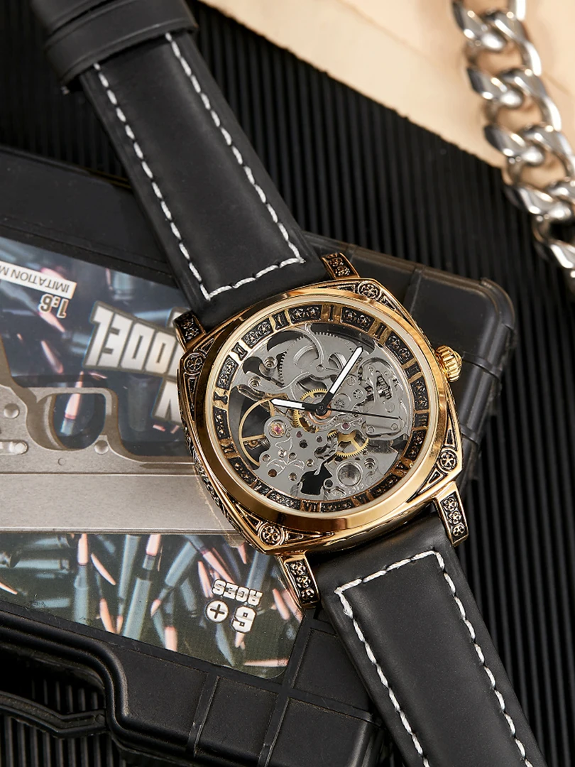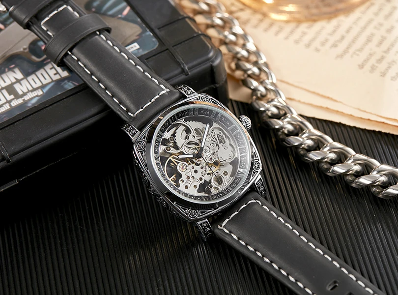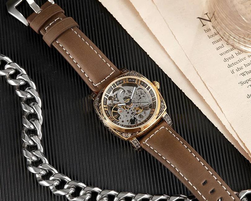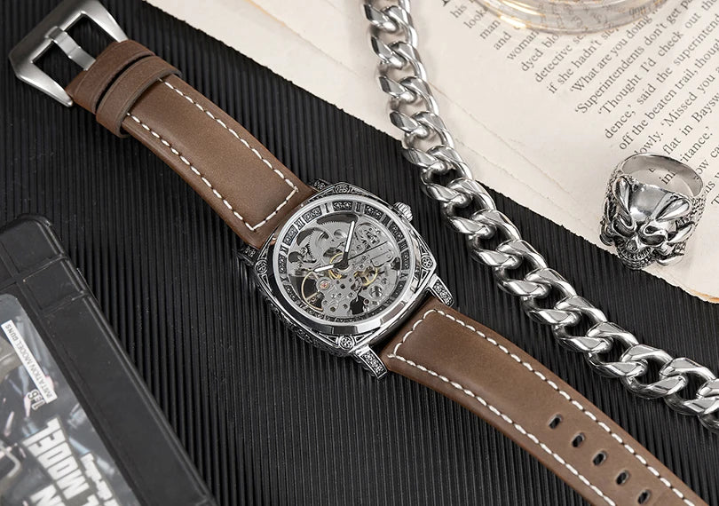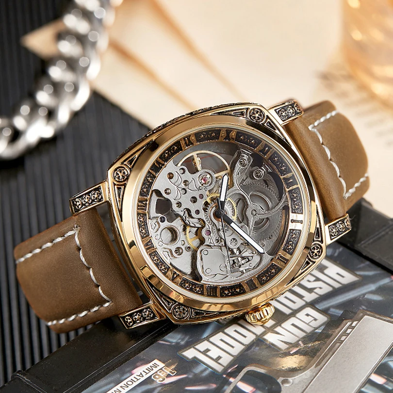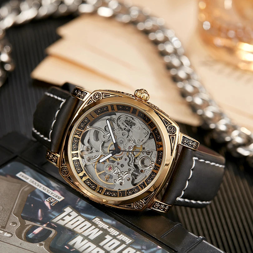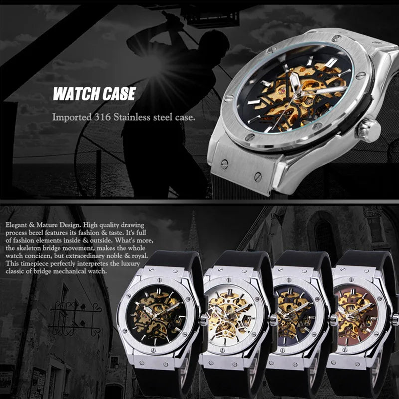 Luxury Automatic Mechanical Watch for Men Hollow Steampunk Dial Skeleton Watches Male Orologio Clock Hombre Relogio Masculino