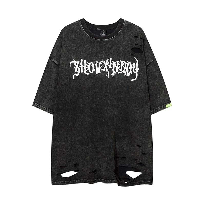 Men Trendy Brands Loose Dark Distressed Top