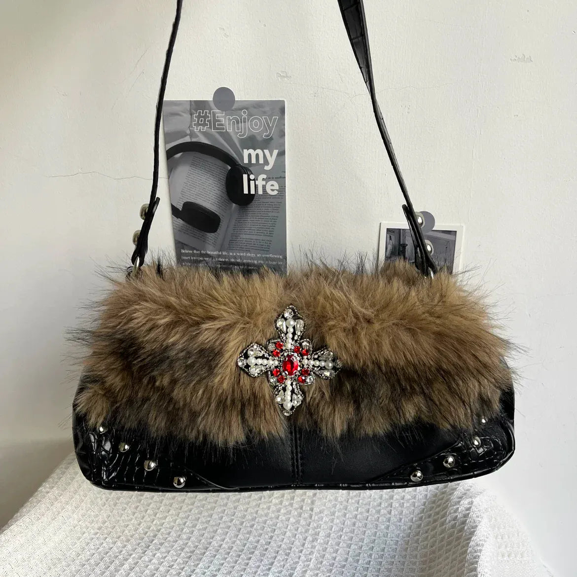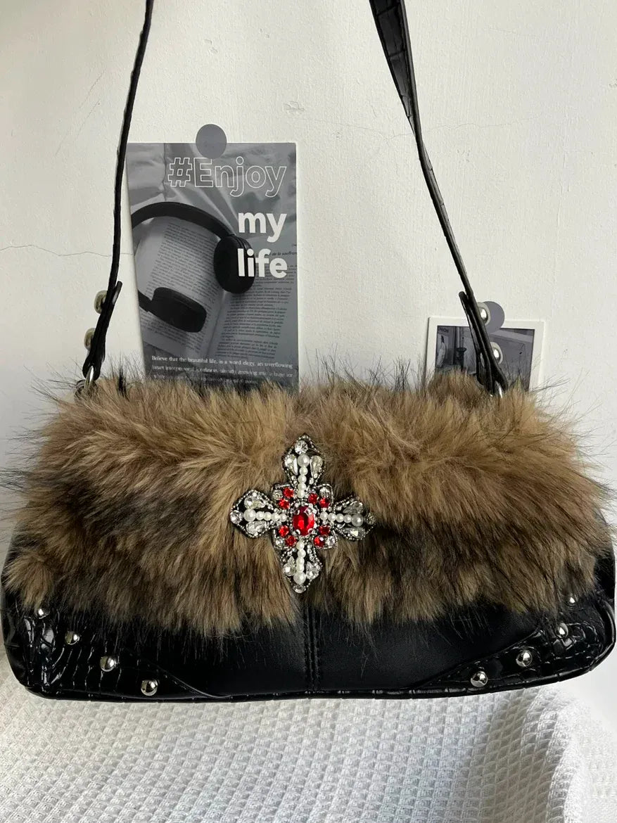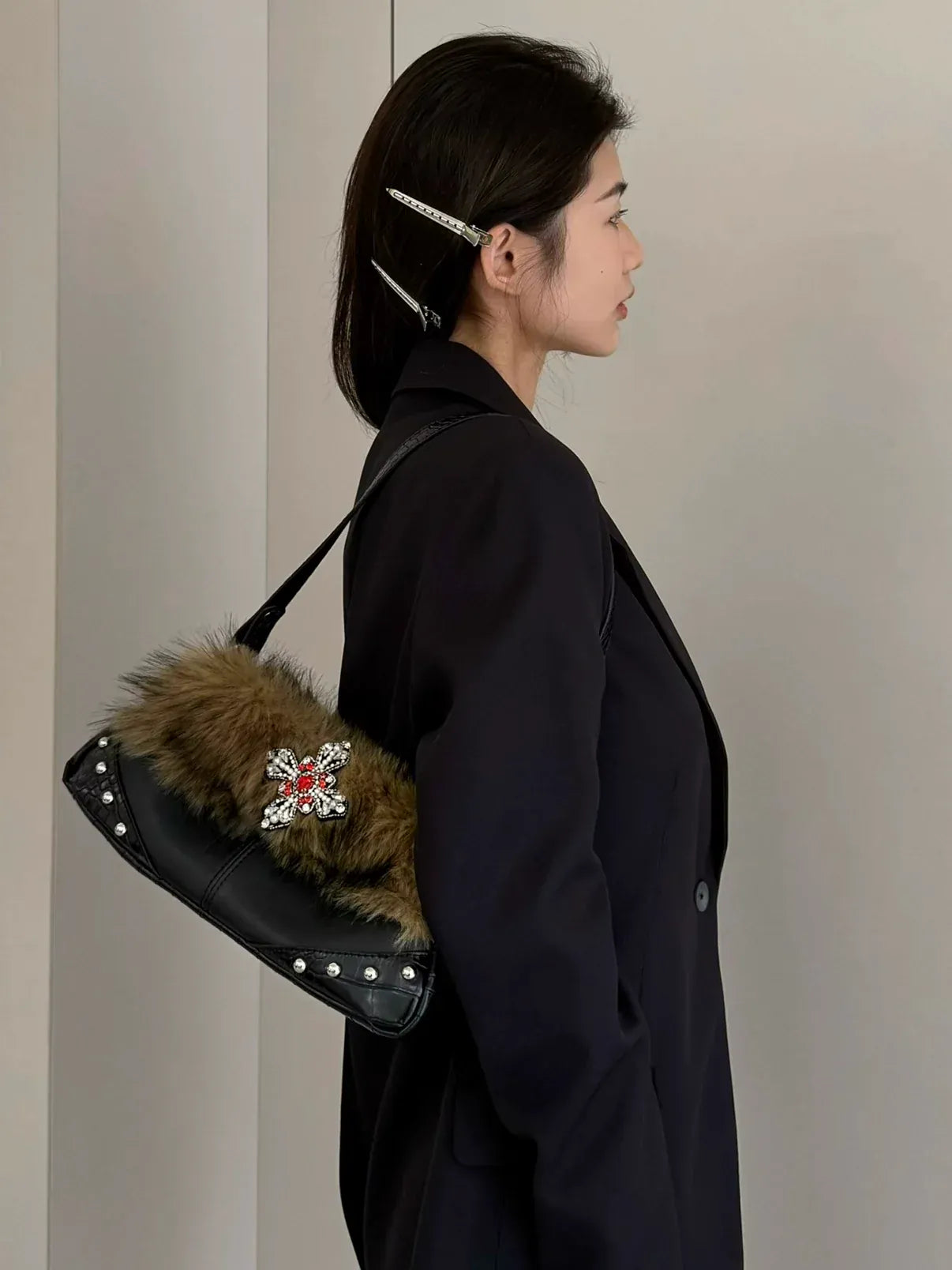 Plush Rhinestone "Sweet-Cool" Underarm Bag