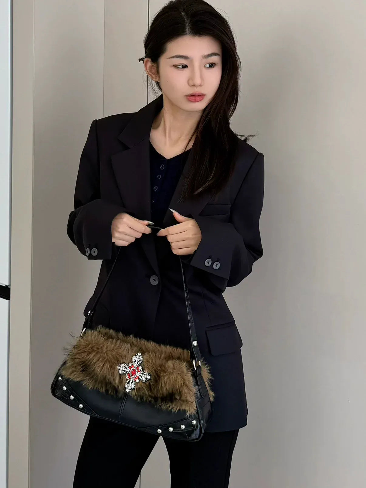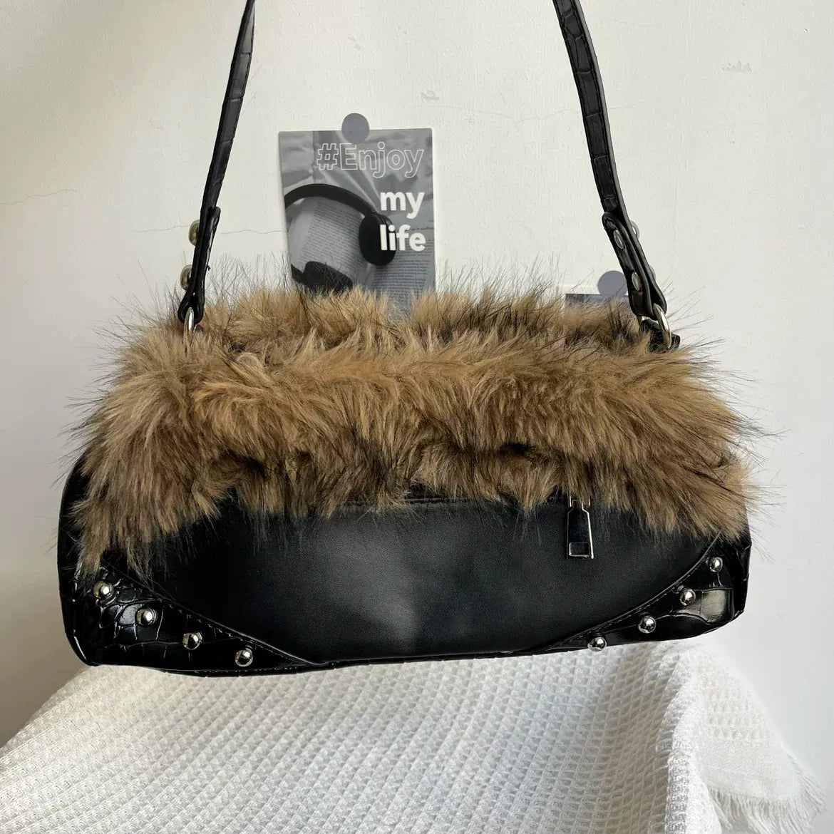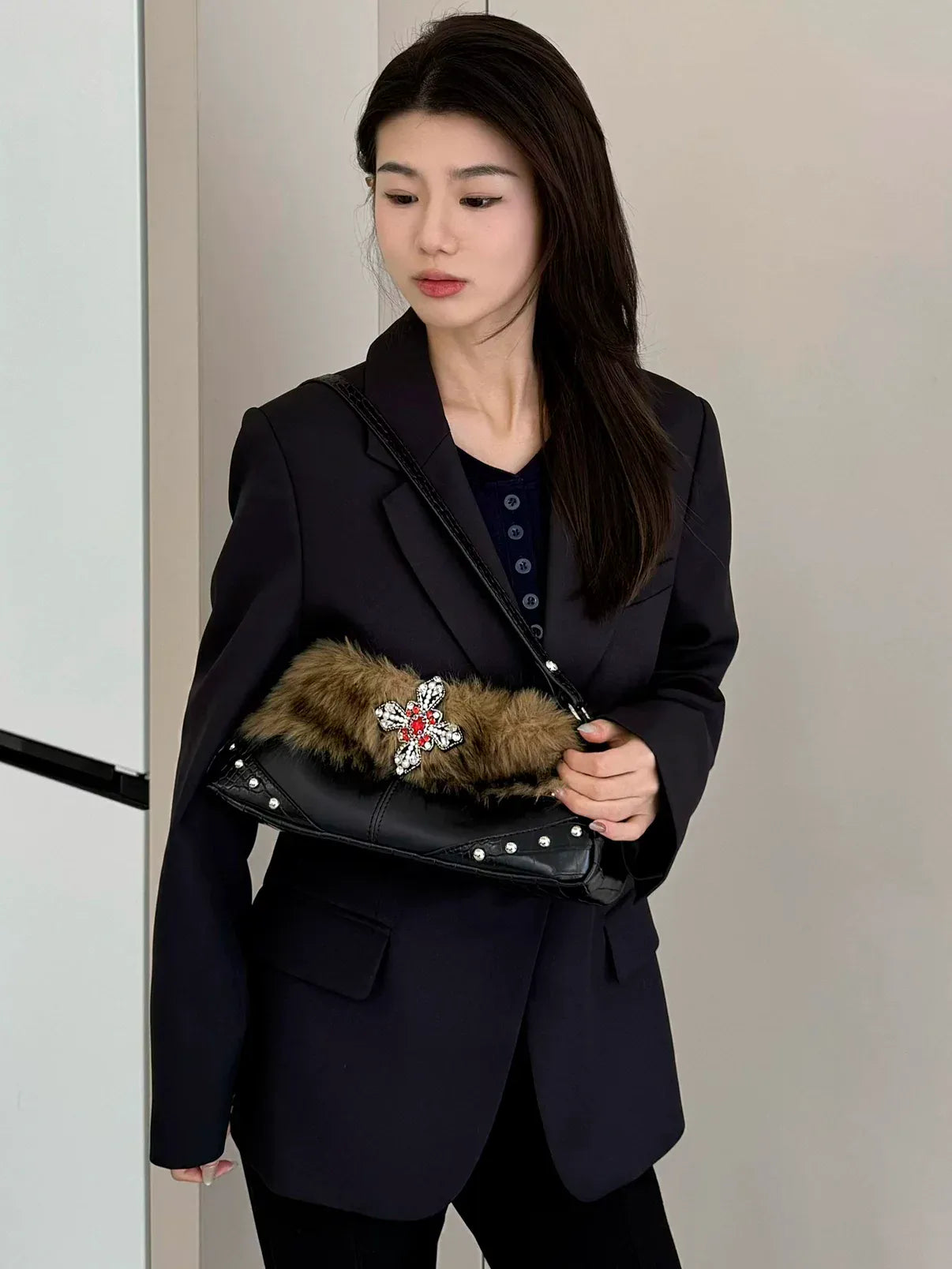 Plush Rhinestone "Sweet-Cool" Underarm Bag