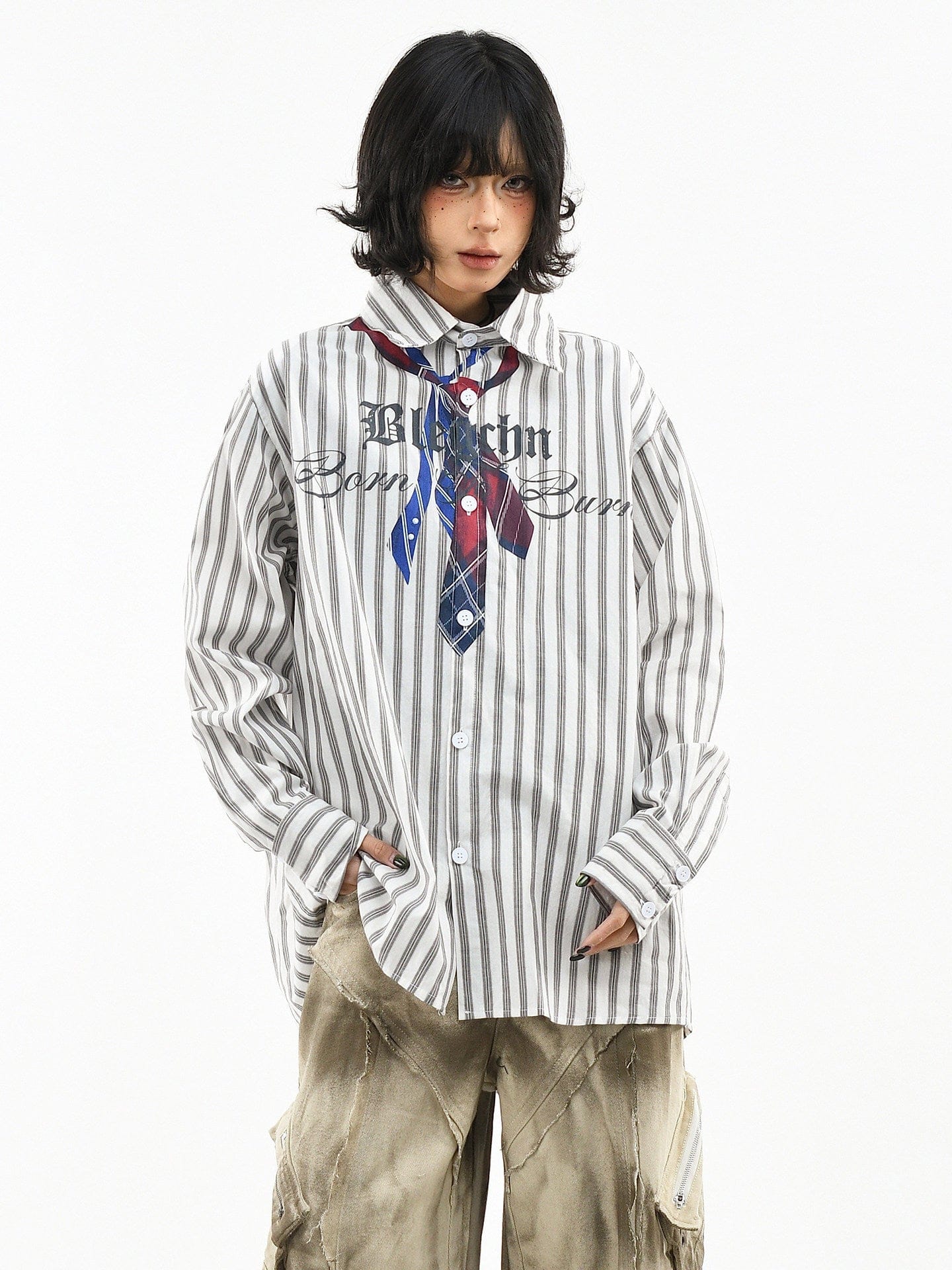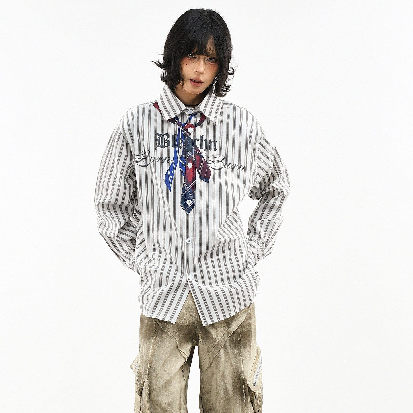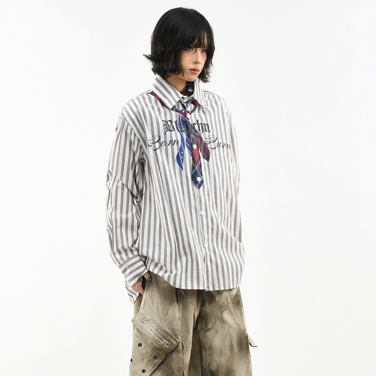 Vertical Stripe Trompe-l'oeil Tie Shirt