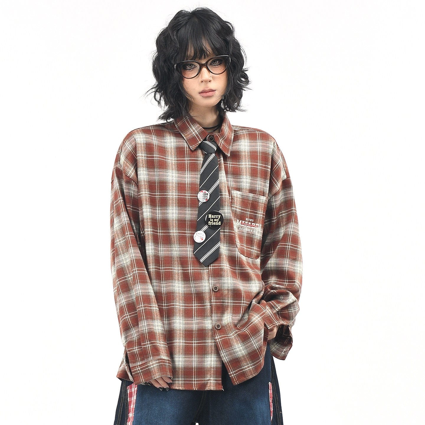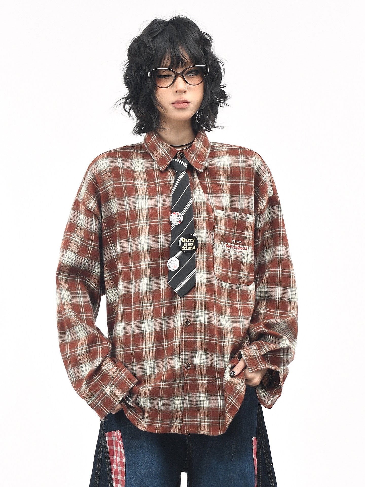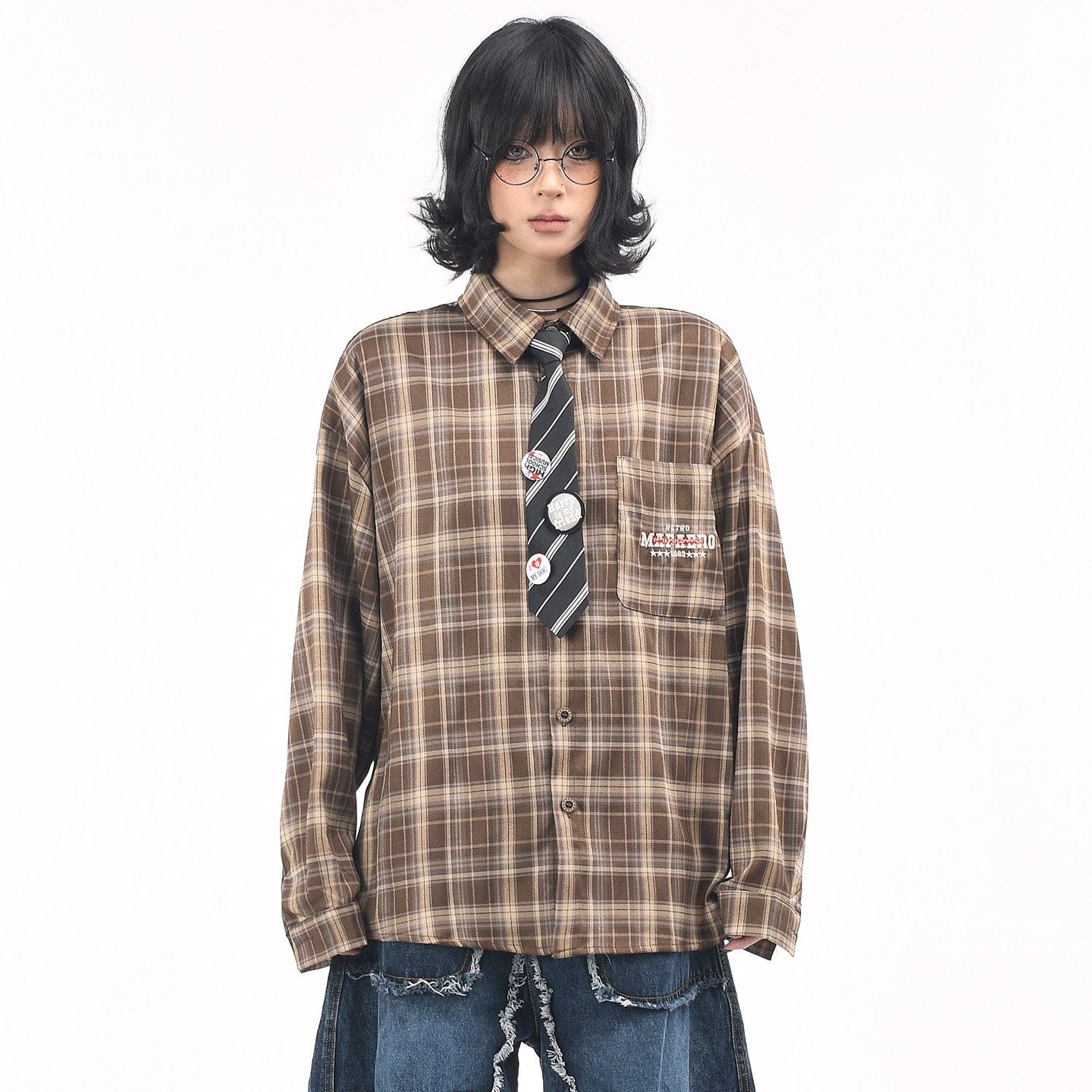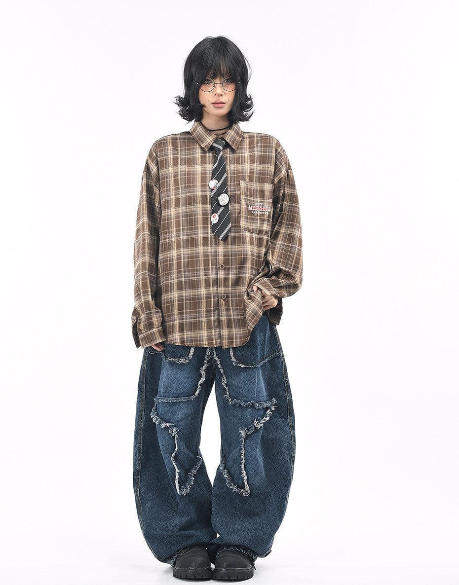 Vintage Badge & Tie Plaid Shirt