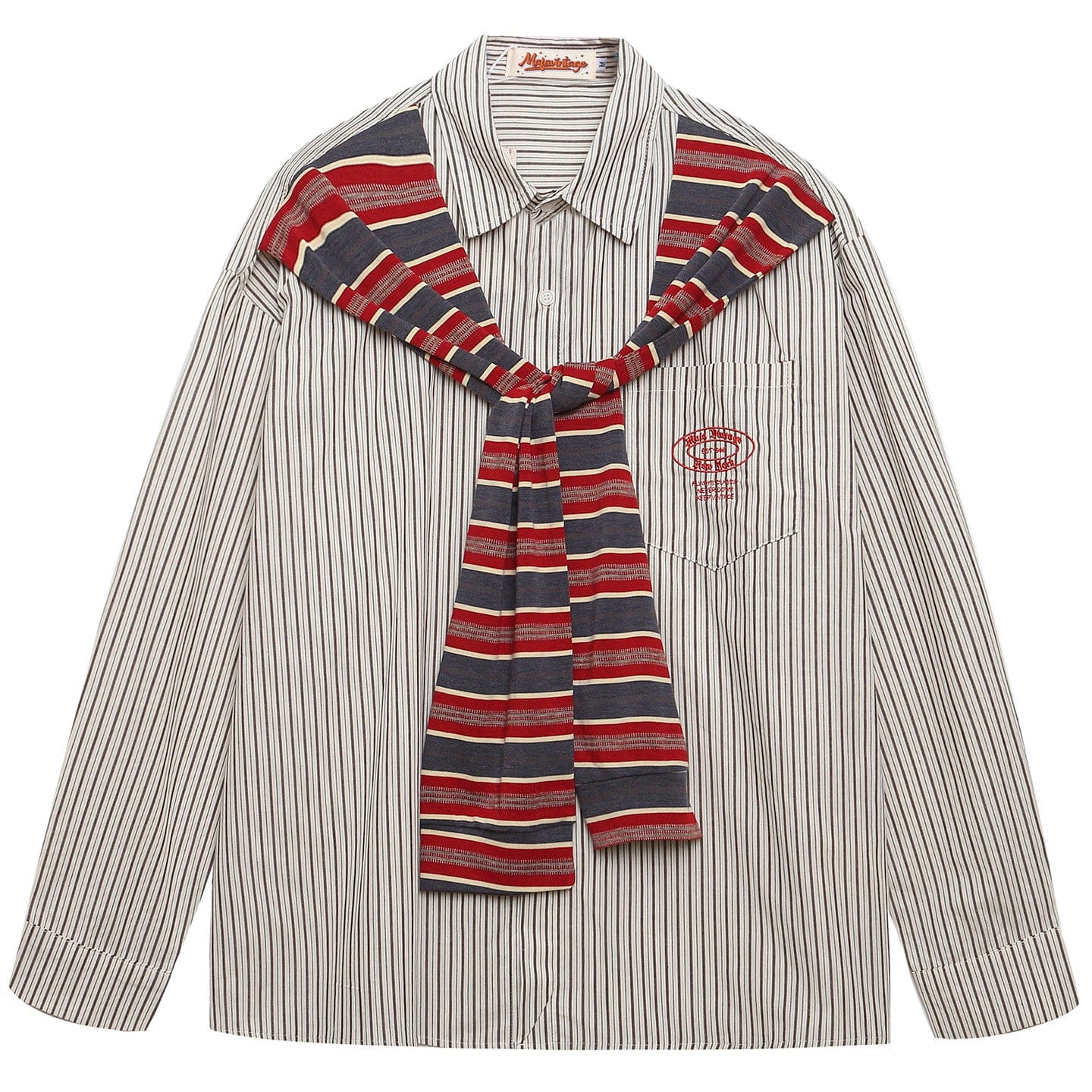 Vintage Striped Shawl-Collar Shirt