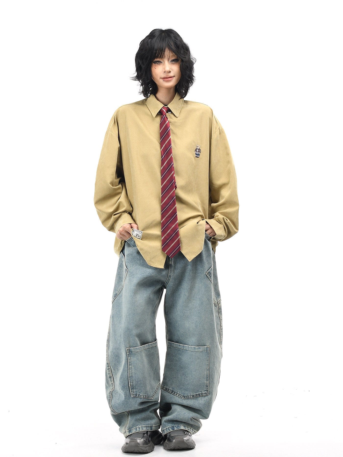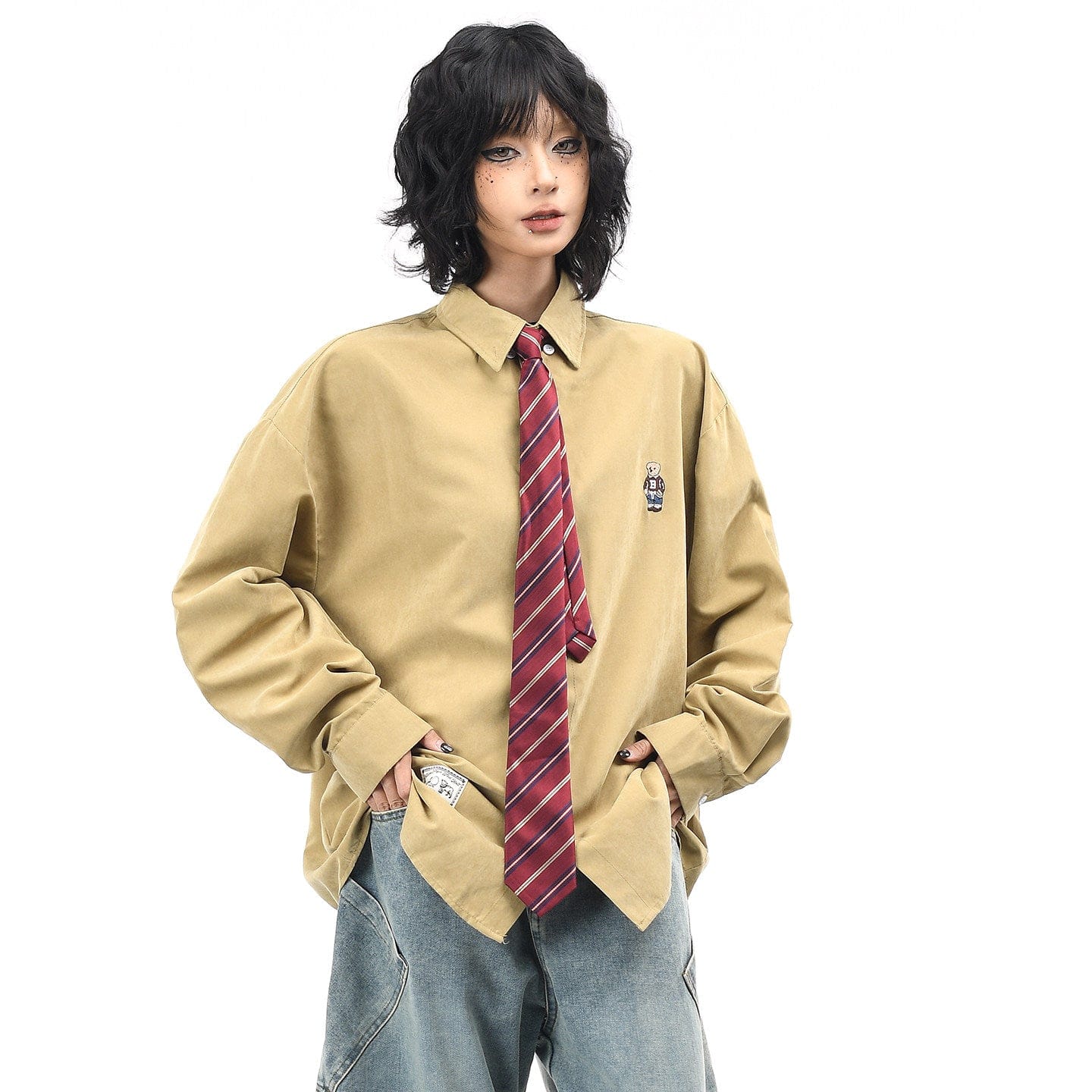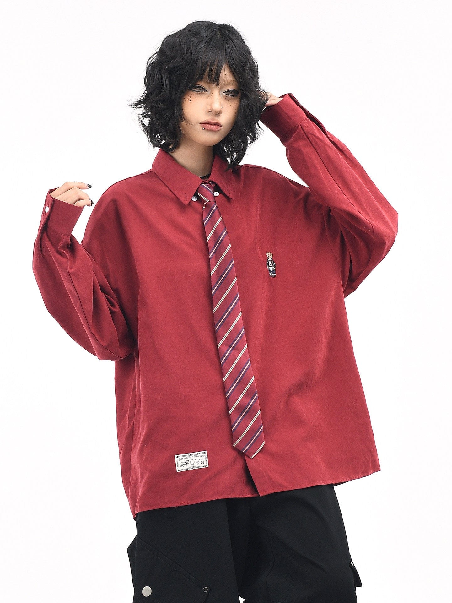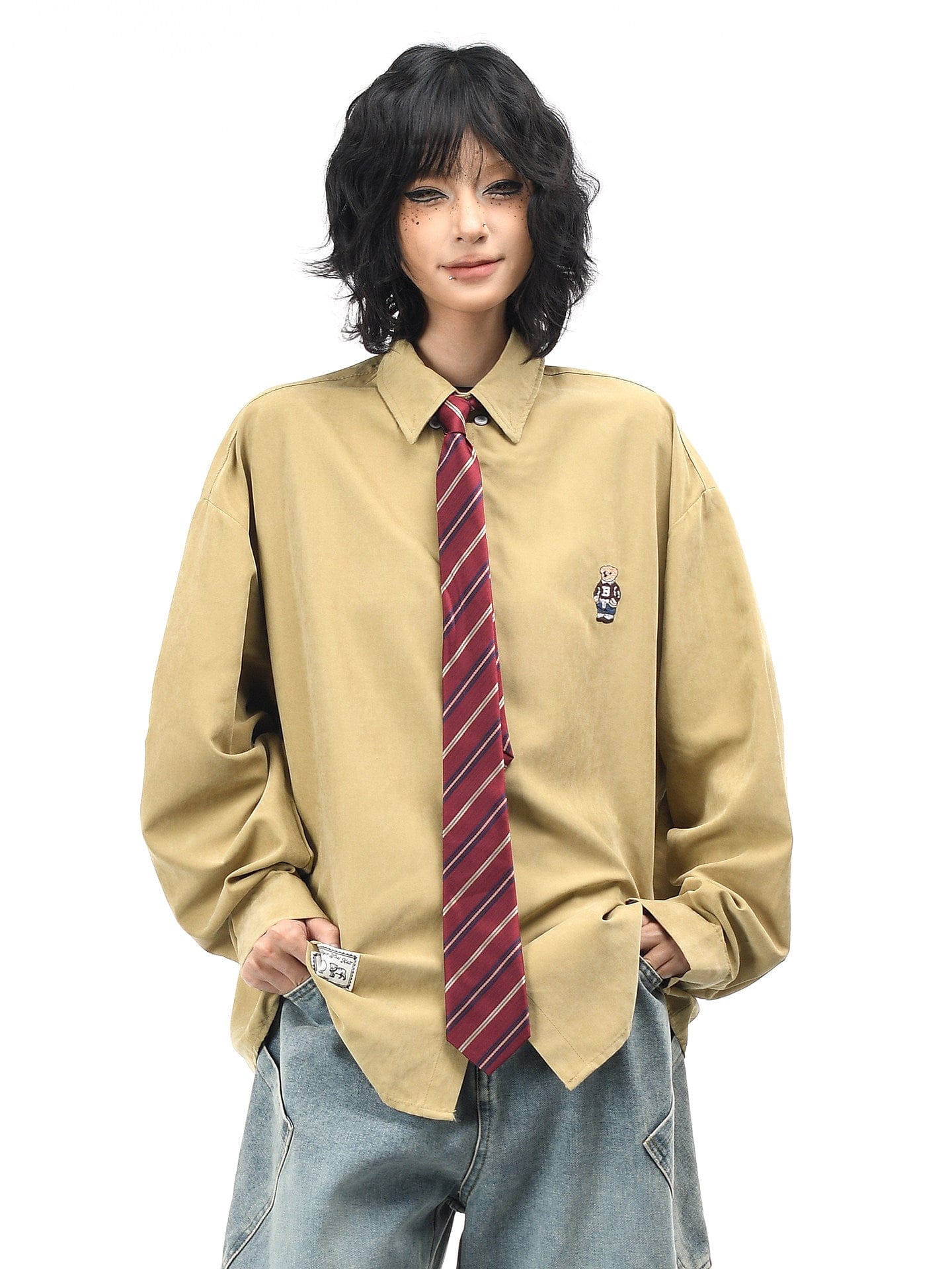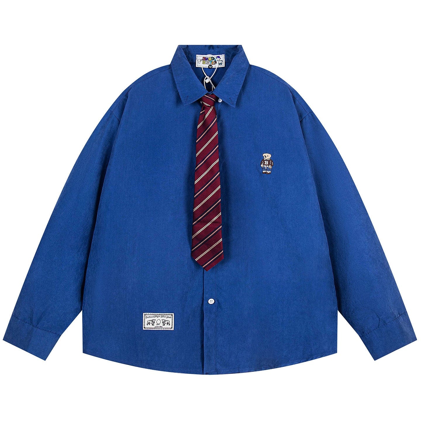 Collegiate Bear Embroidery Tie Shirt