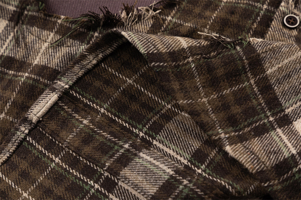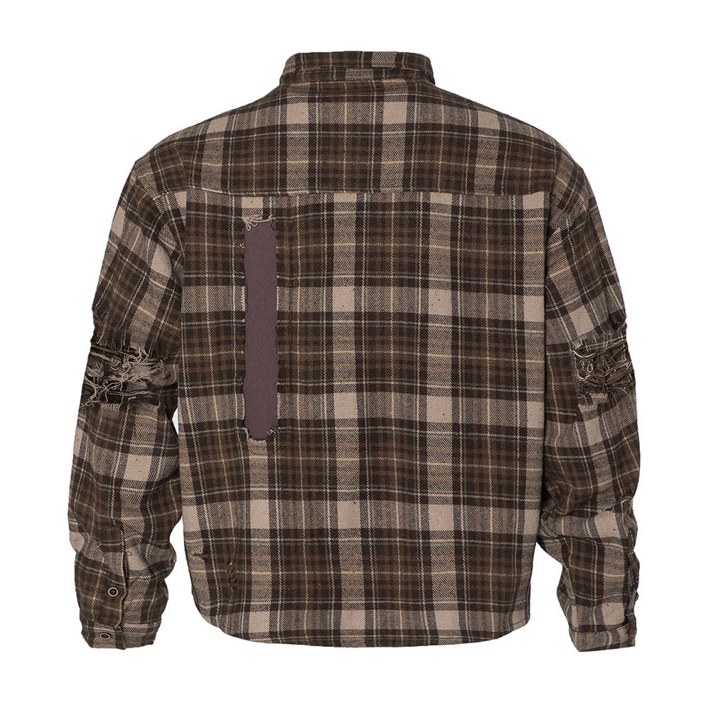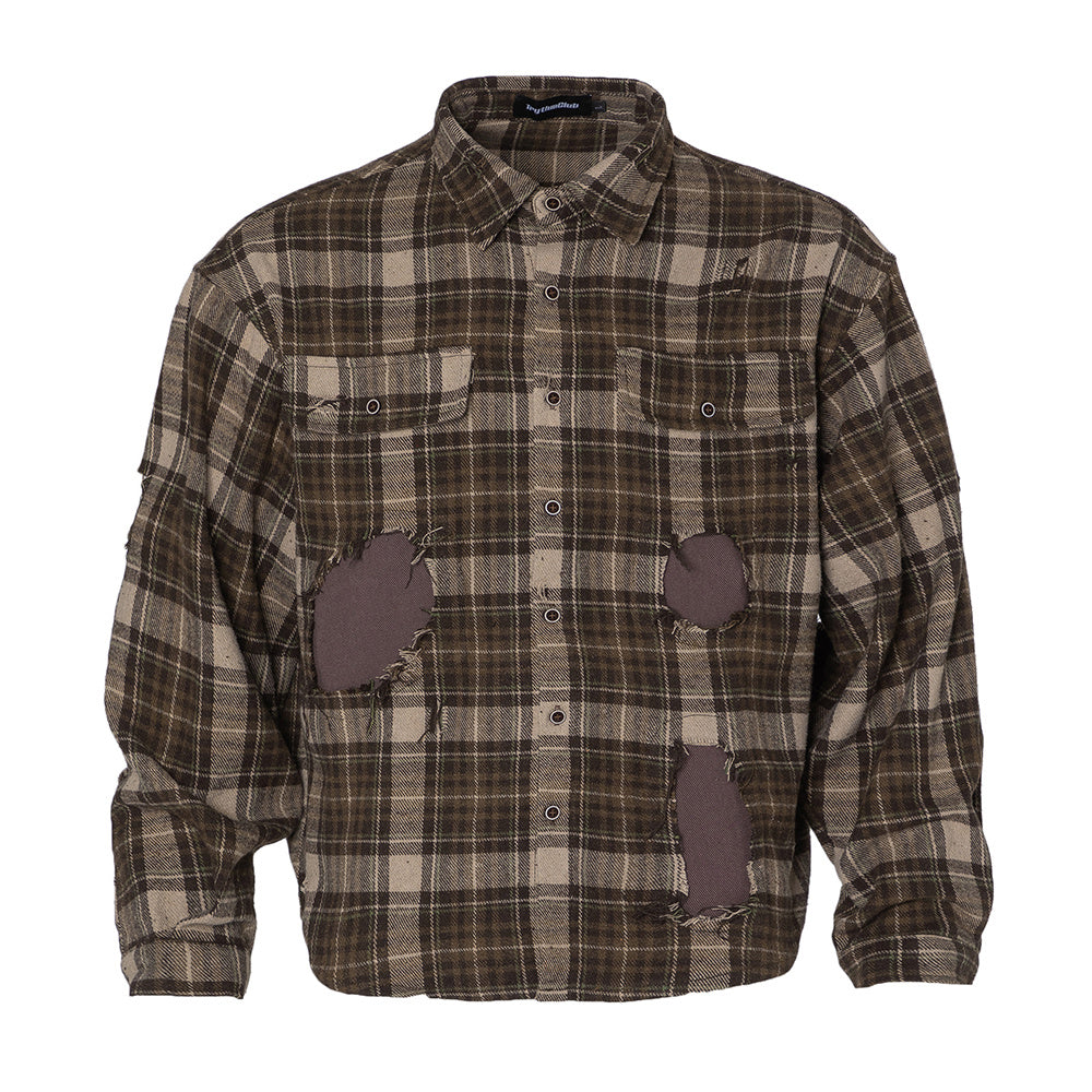 Plaid Trendy Hole & Patch shirt—2115