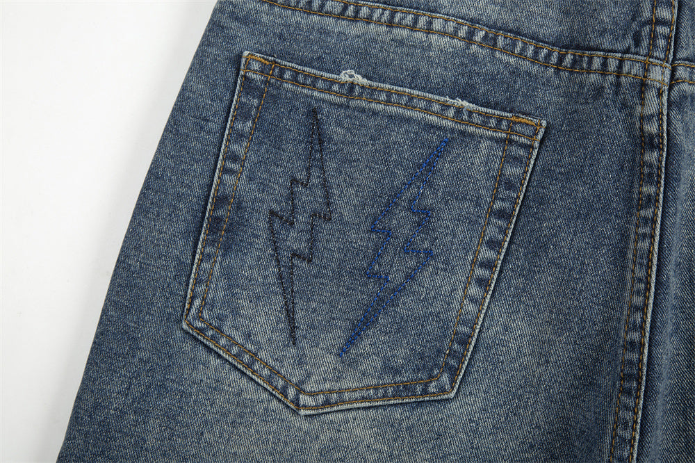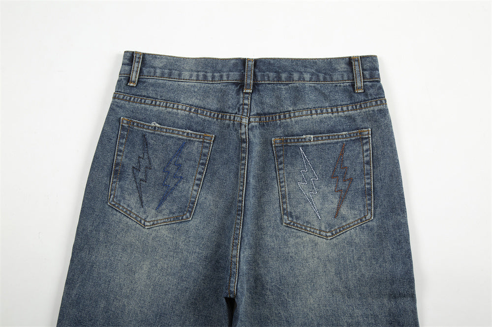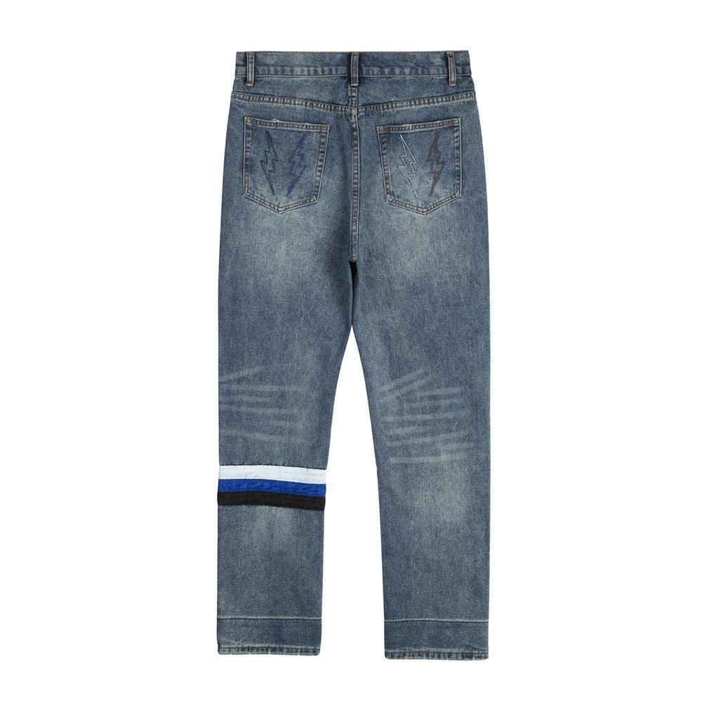TALKLESS Hole Patch Embroidered Jeans----2214