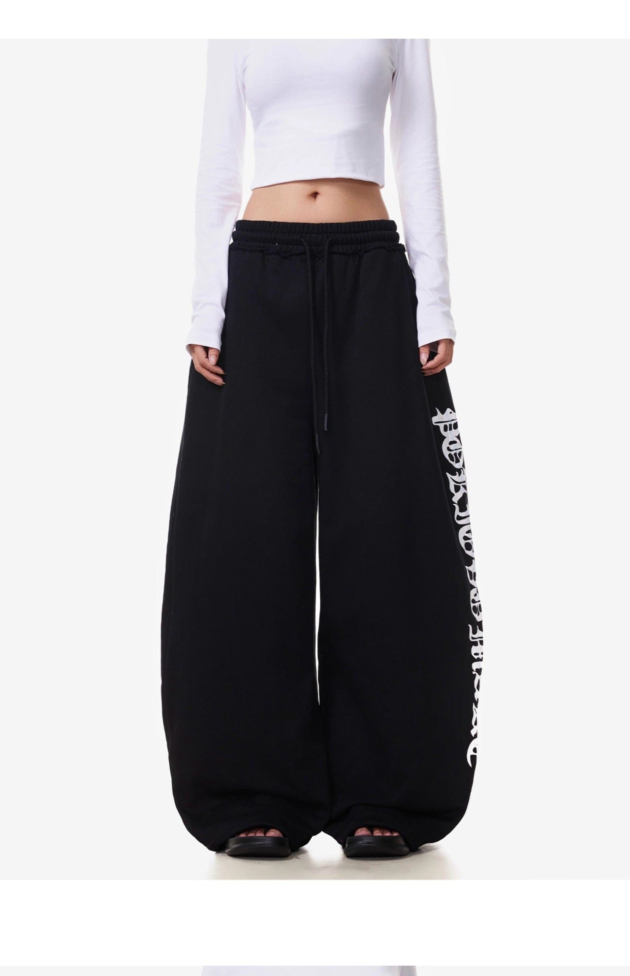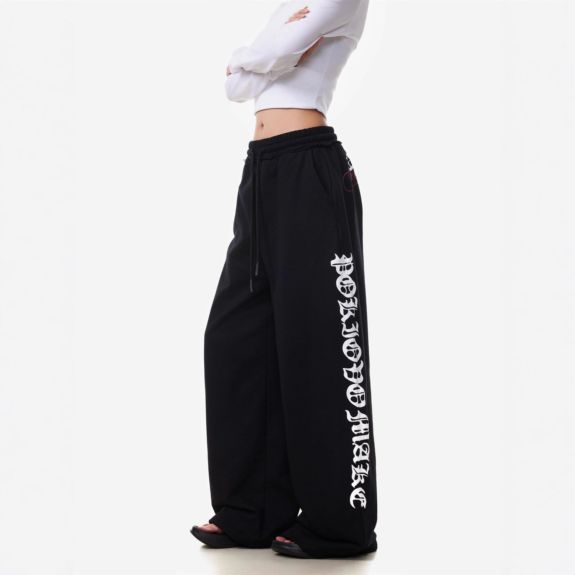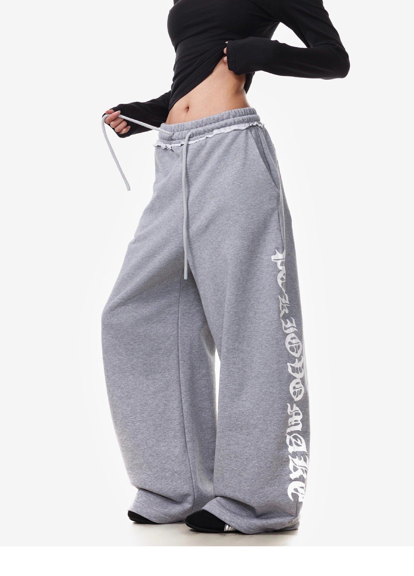 Vintage American Letter Print Scimitar Sweatpants Women's Trendy Sports Jazz Dance Street Loose Drape Wide-leg Pants