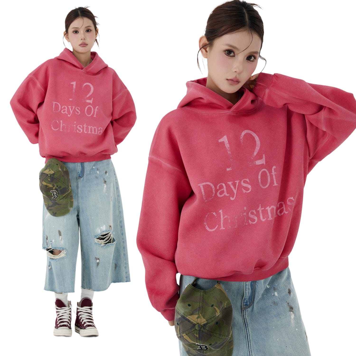W593 American Vintage Men's Men's High-End Trend Letter Print Design Men's Loose Dyeed Hooded Sweatshirt
