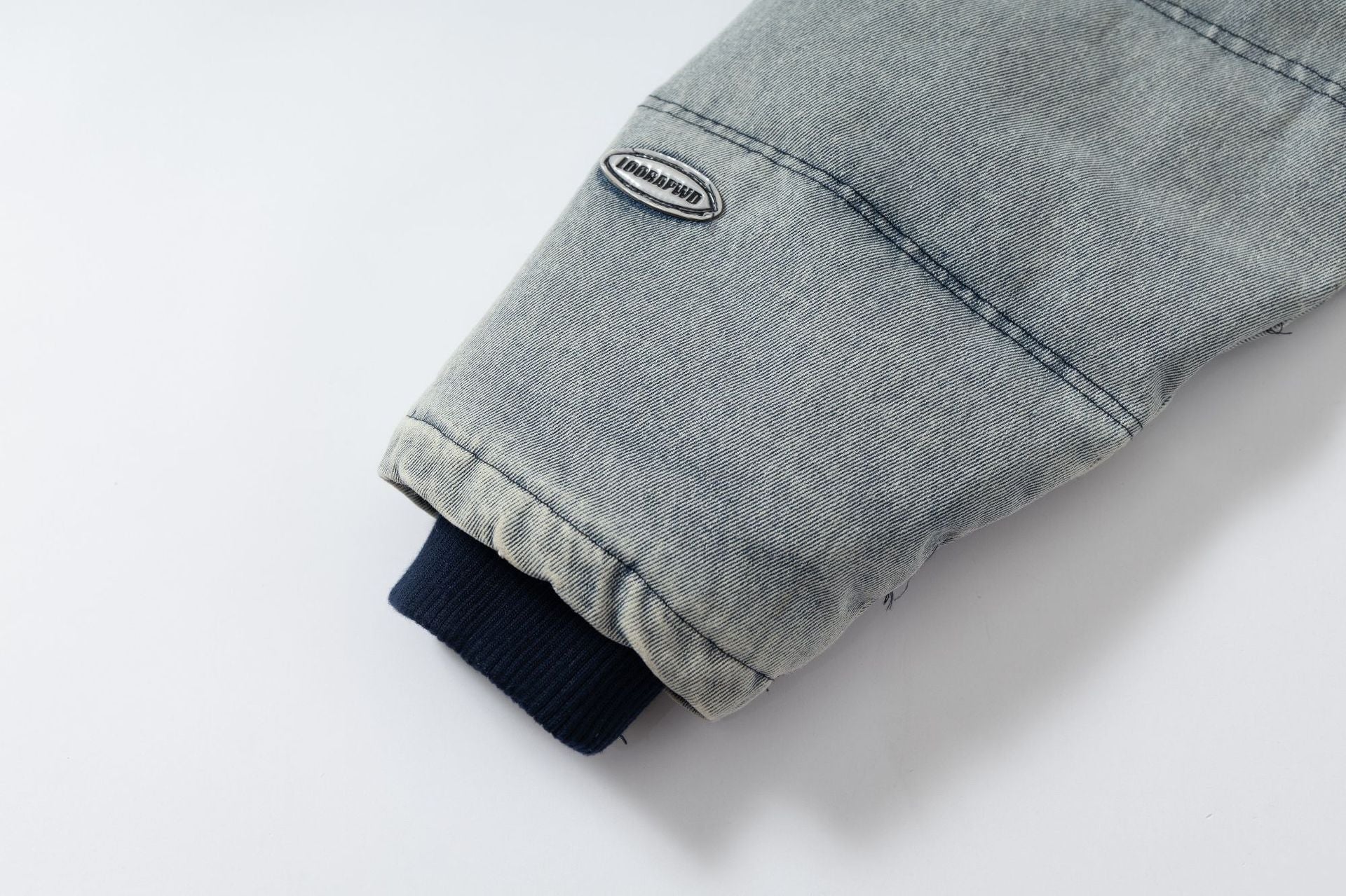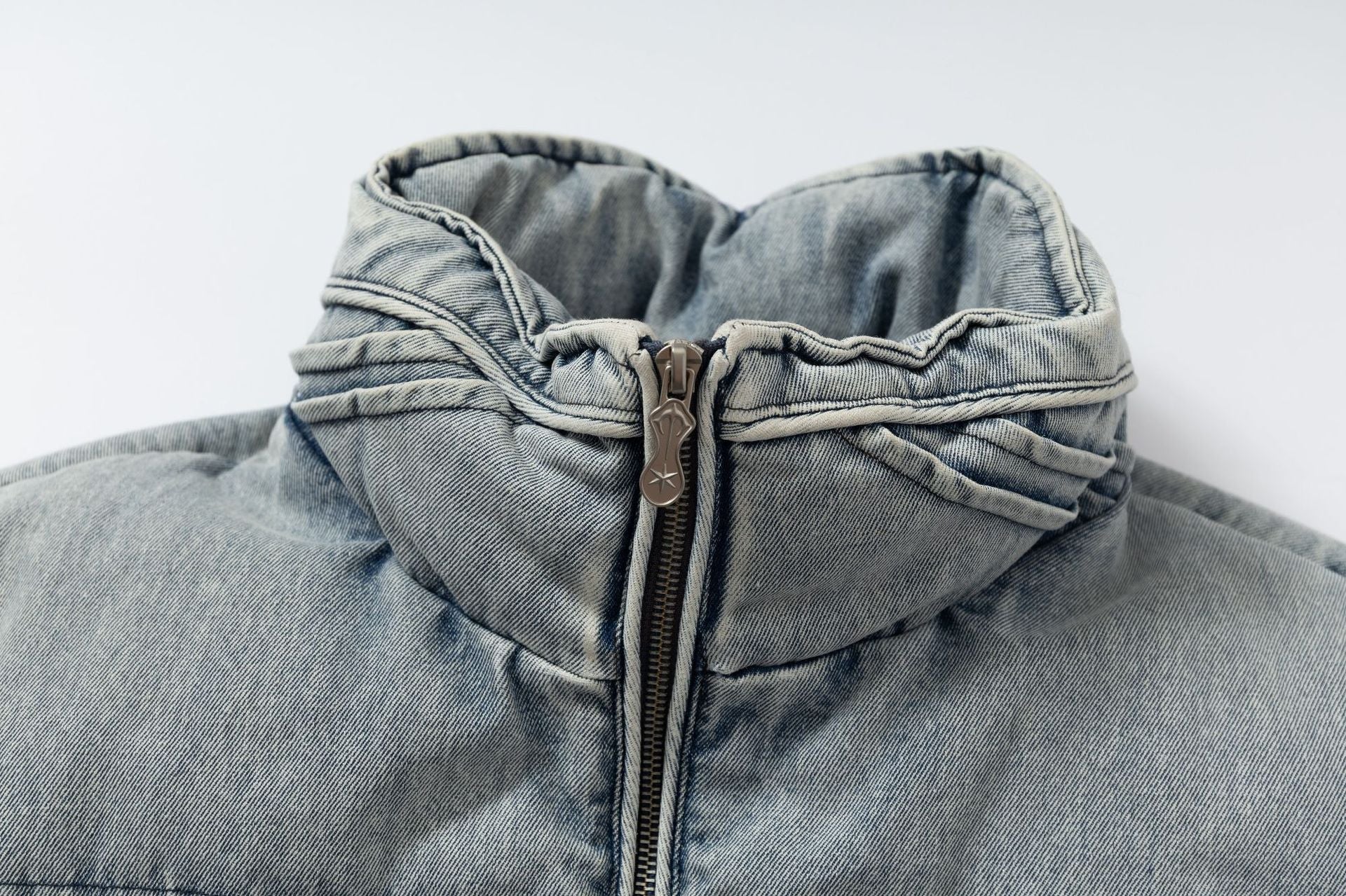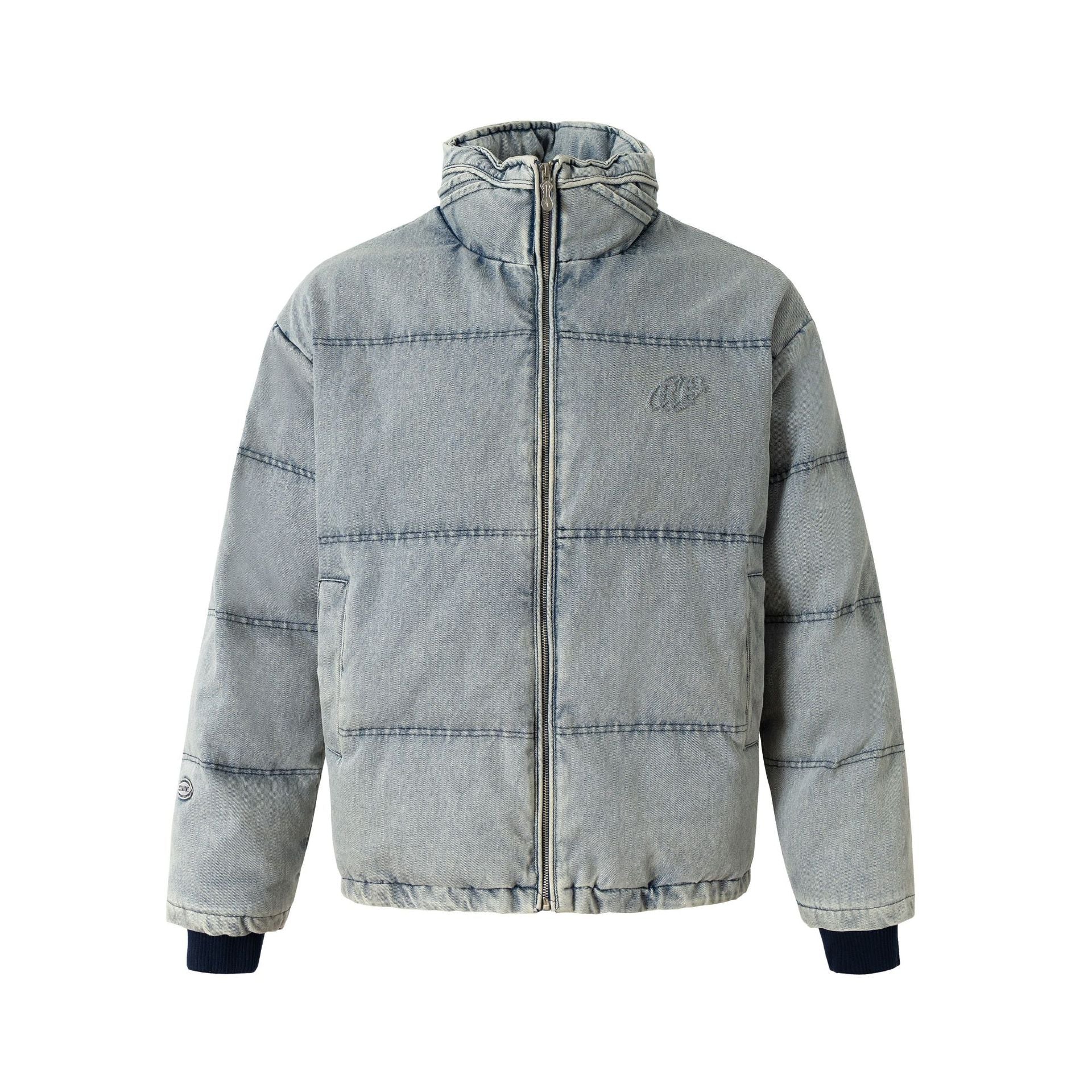 Washed Denim Stand Up Collar White Duck Down Jacket