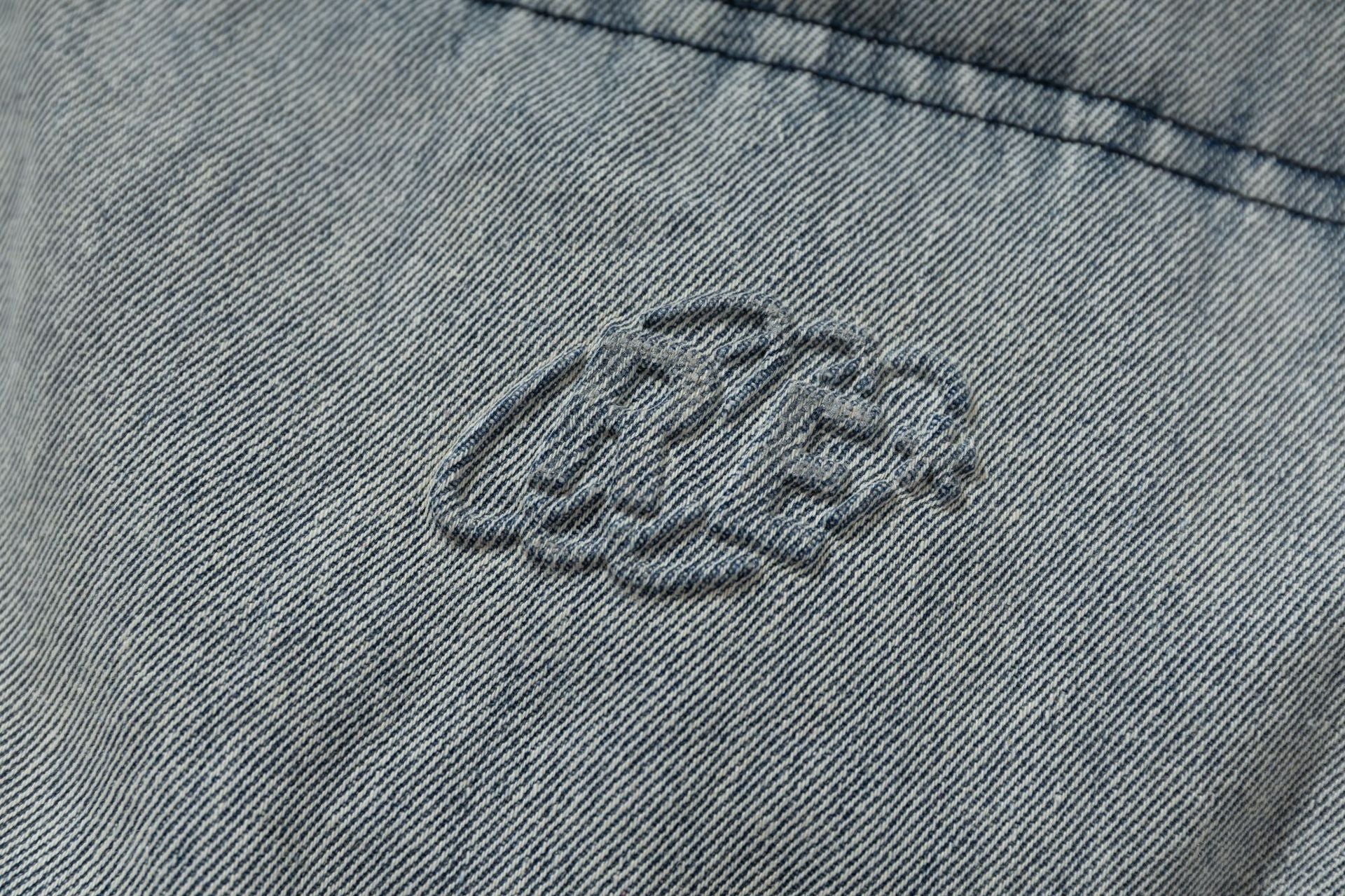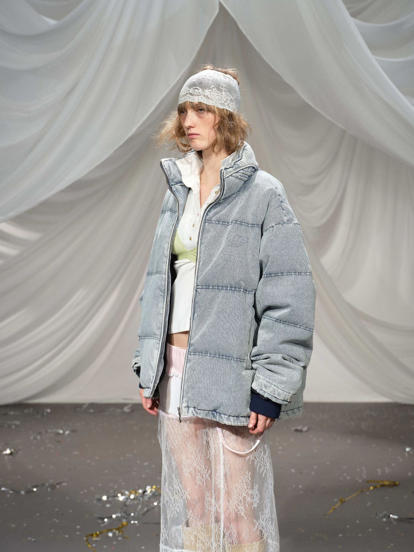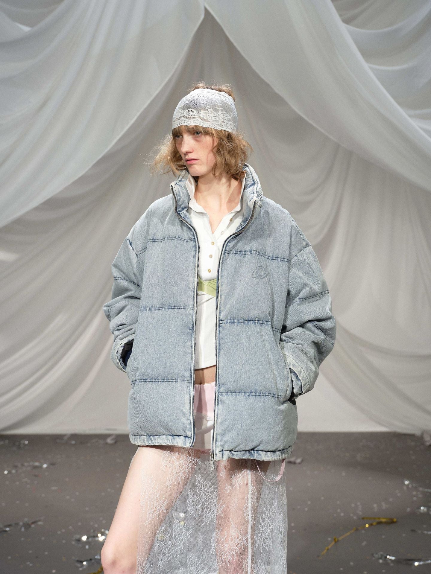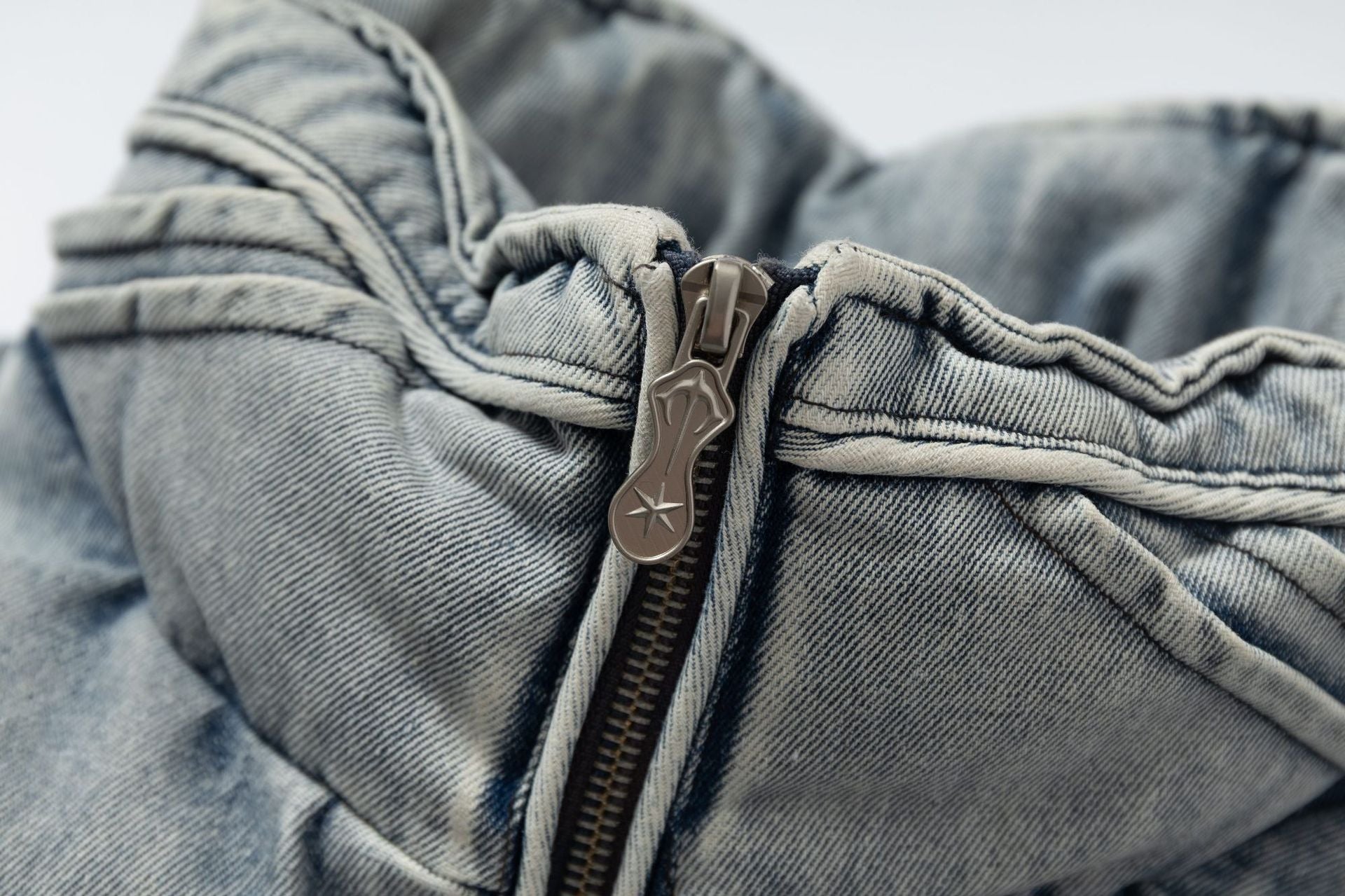 Washed Denim Stand Up Collar White Duck Down Jacket