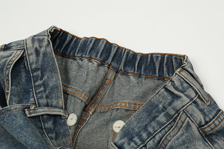Women's American Style Loose Wide Leg Dark Blue Jeans